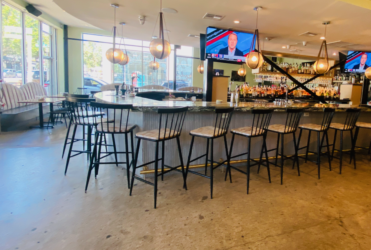 Alas, we showed up for lunch on a Thursday. With its large, plush booths and bright, open space, the downstairs dining room at this new spot is larger and a bit more refined than the previous location. A horseshoe bar sits in the middle of the dining room, and there are some tables outside on the sidewalk in front.
