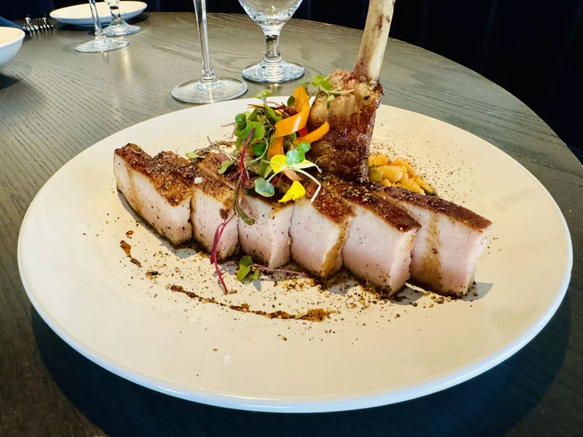For dinner, there’s charred octopus, an absolutely stunning 14-ounce bone-in pork chop and an Alba lamb rack. If you’re a bit peckish go for the Thalassina seafood platter for two ($109) or four ($218).