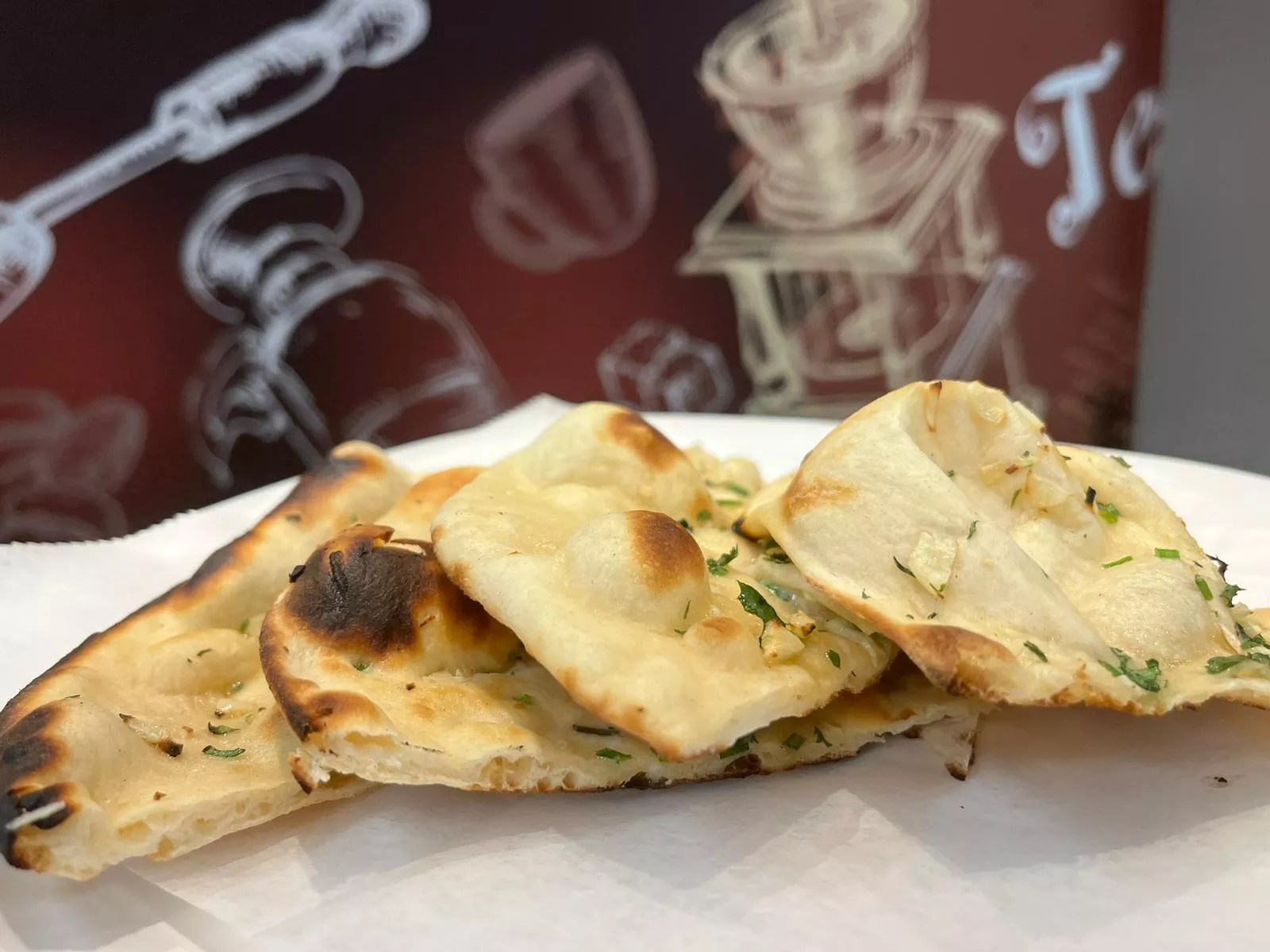 Hot Breads’ naan bread is crispy on the outside and fluffy within. Order a bowl of curry to dip it in.