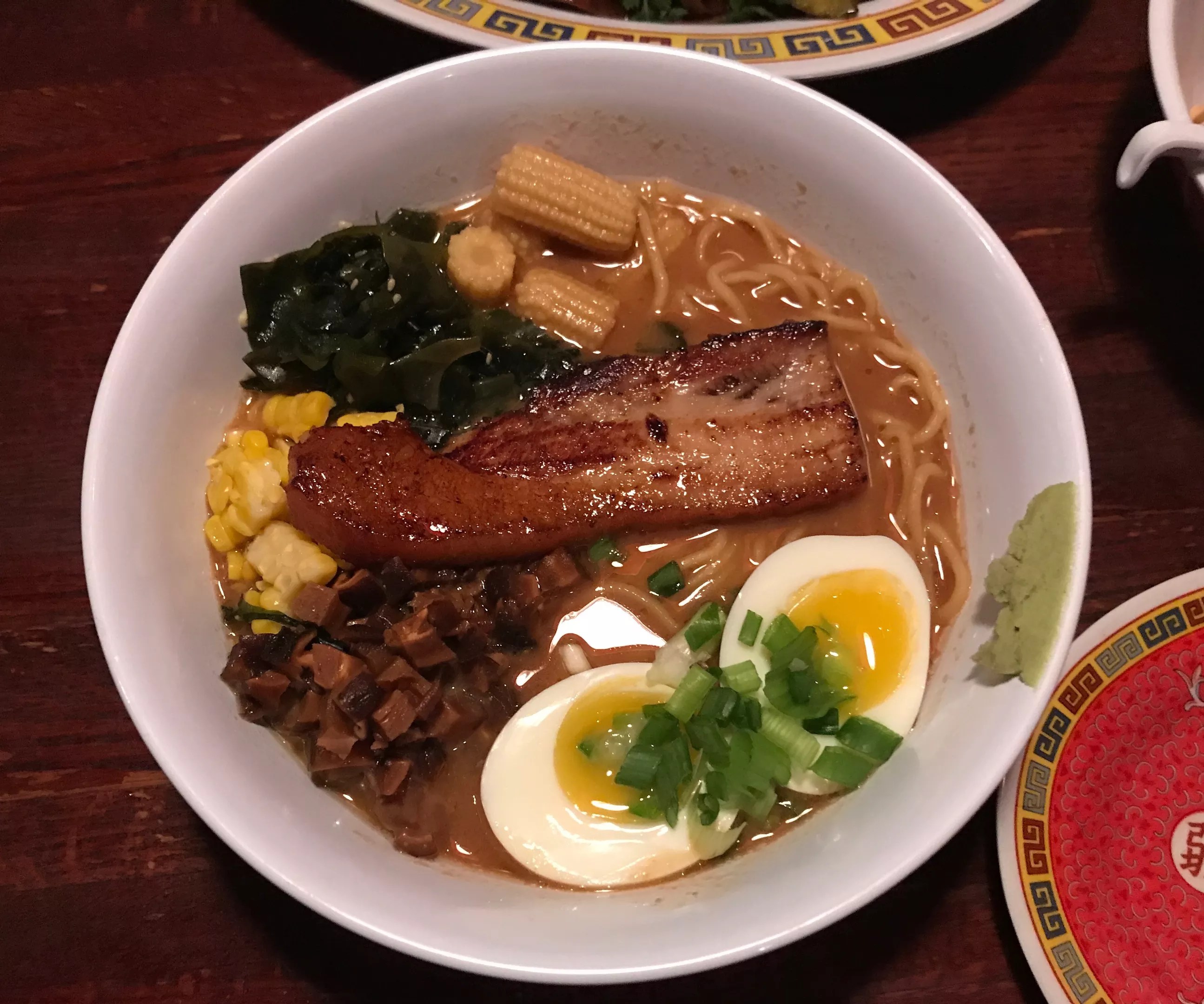 The double miso ramen gets an indulgent touch when you add beautifully cooked pork belly.