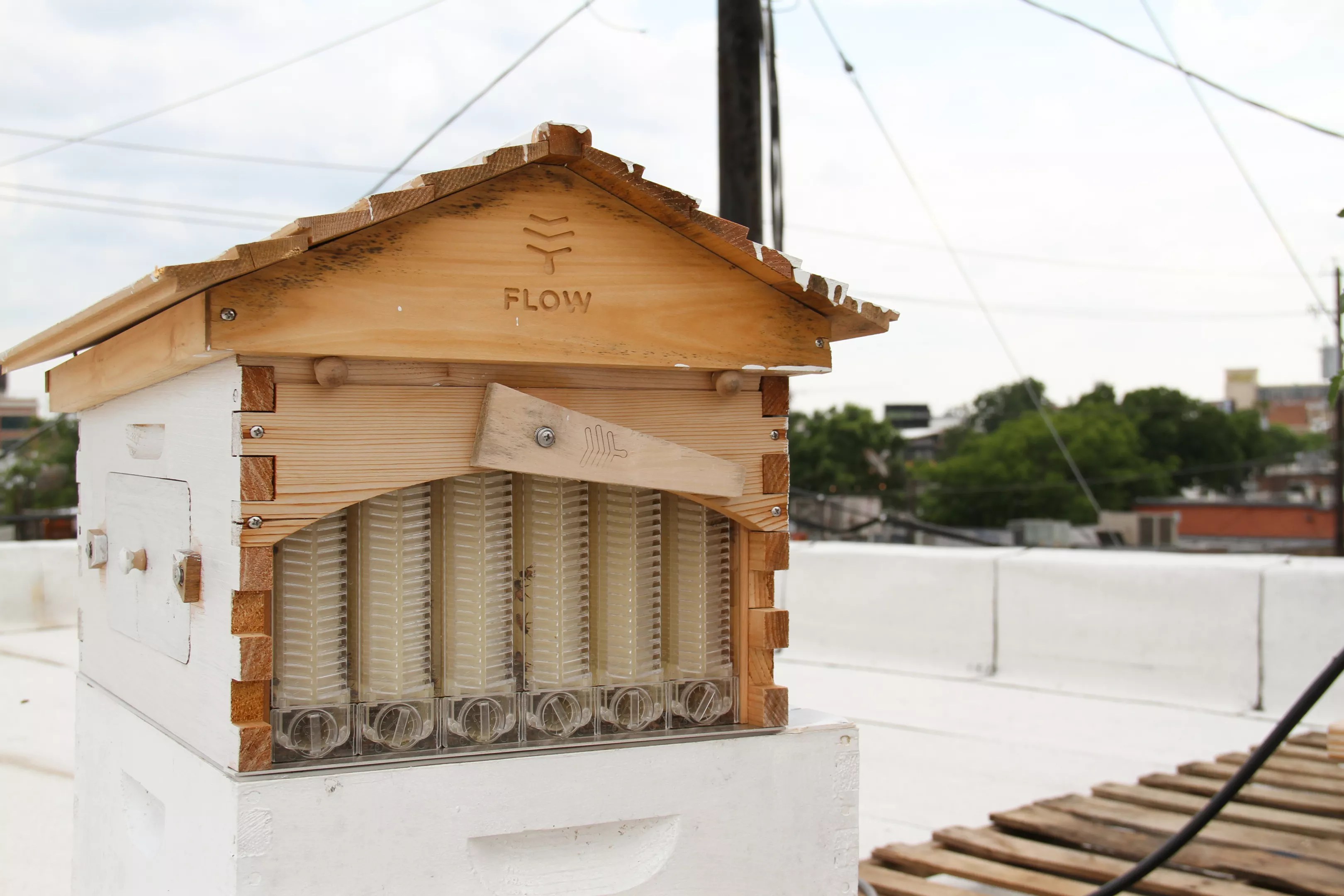 The rooftop has a small compartment for bees: Orsini can walk you through the technology, how he’ll be able to shift the compartments to release the honey without disturbing bees, and how he can expand the area so as not to force out the queen bee.
