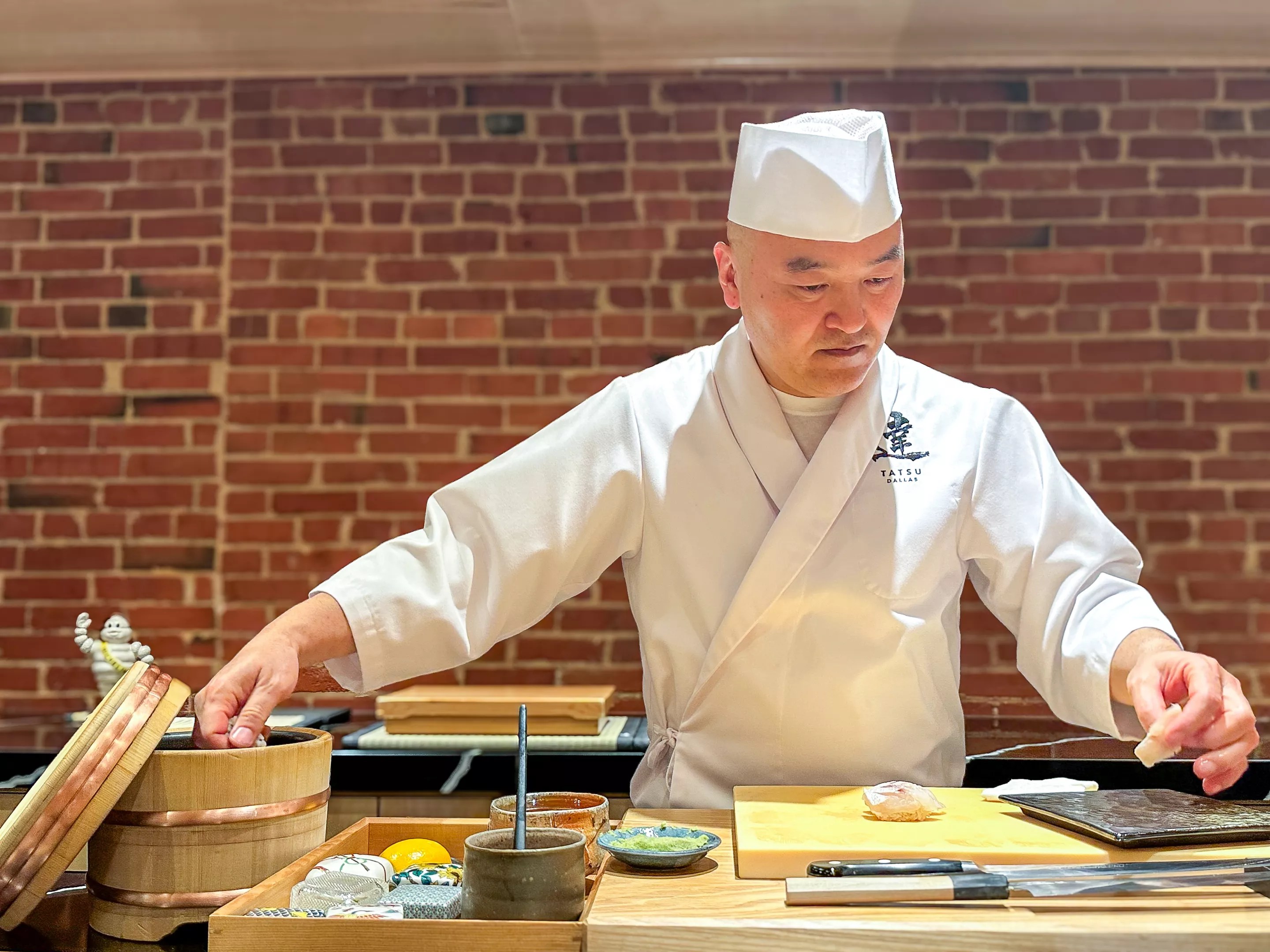 Tatsu, an edomae-style omakase, has been open for a couple of years in Deep Ellum. It’s the creation of chef Tatsuya Sekiguchi and his wife, Hiroko. It has won numerous accolades including the aforementioned Michelin star, the first and, so far, only restaurant to be so honored in Dallas. Each sitting is presented with a menu of that night’s dishes, as is the norm, but what’s interesting is the back of that menu, which lists all the ingredients used in that meal along with their specific variety and geographic origin.