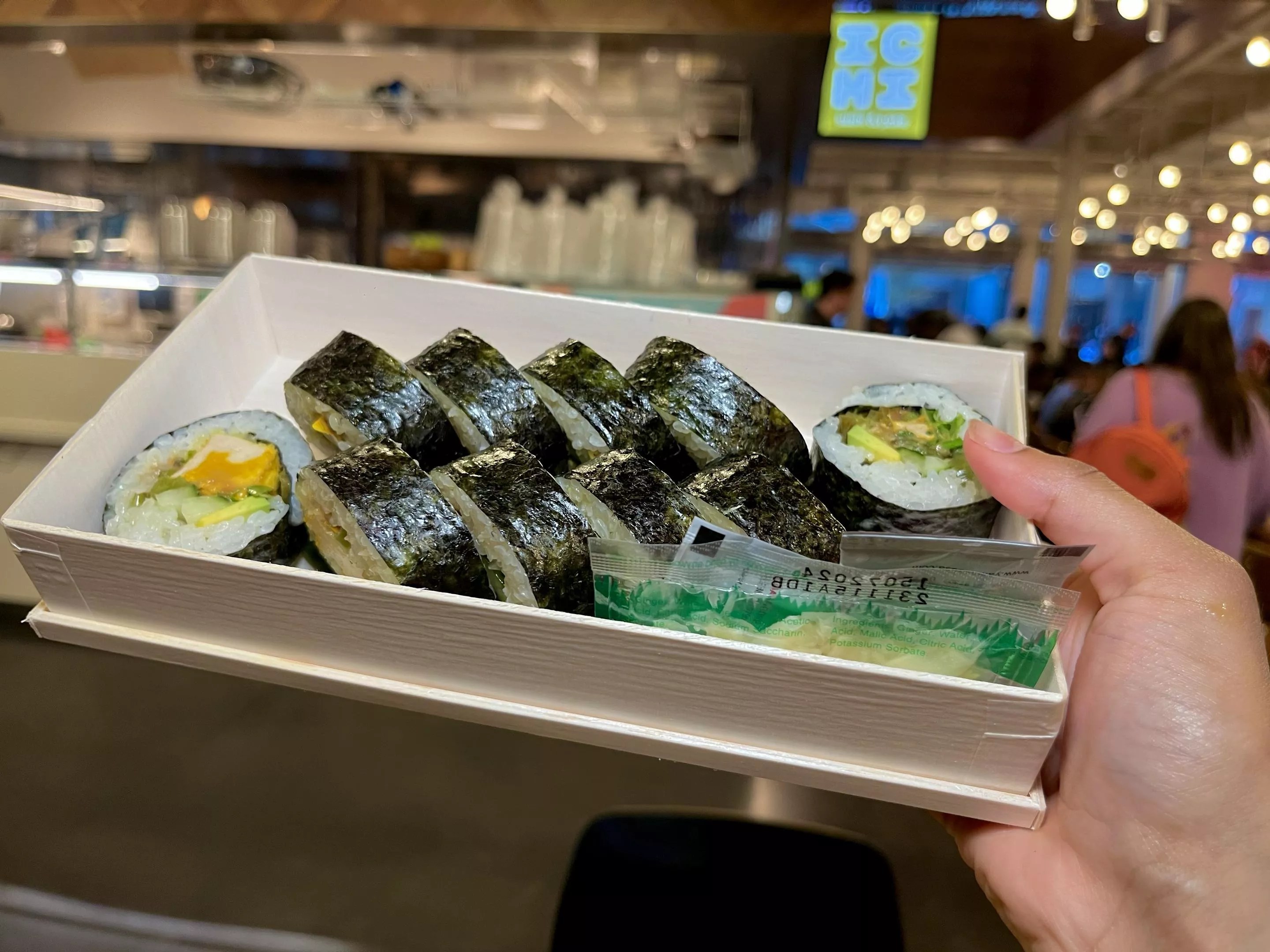 All sushi options come cut into tenths and packed in a fancy takeout box.