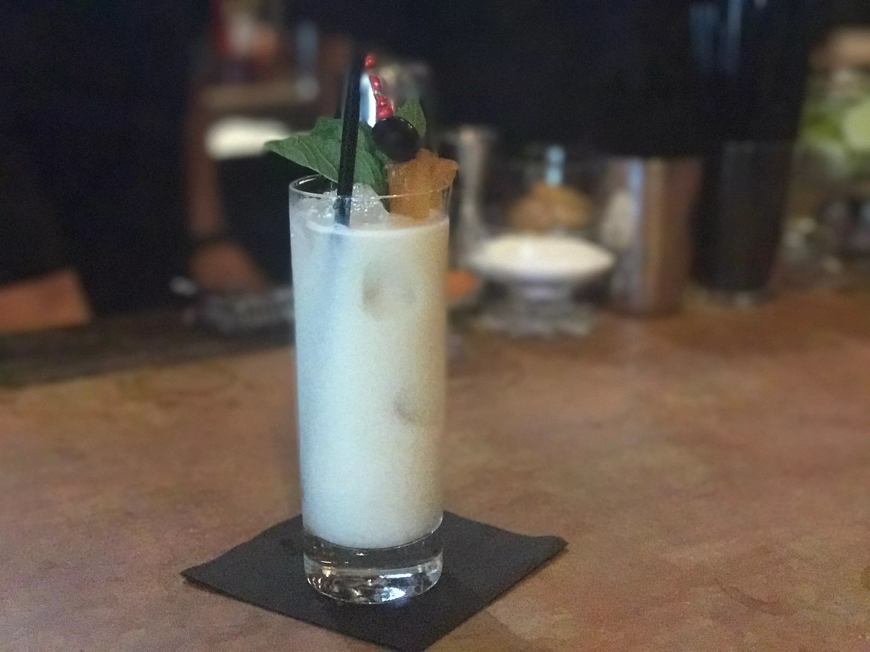 The Island 2826 is made with Flor de Cana rum, lime, black pepper-roasted pineapple, coconut orgeat and hemp milk.