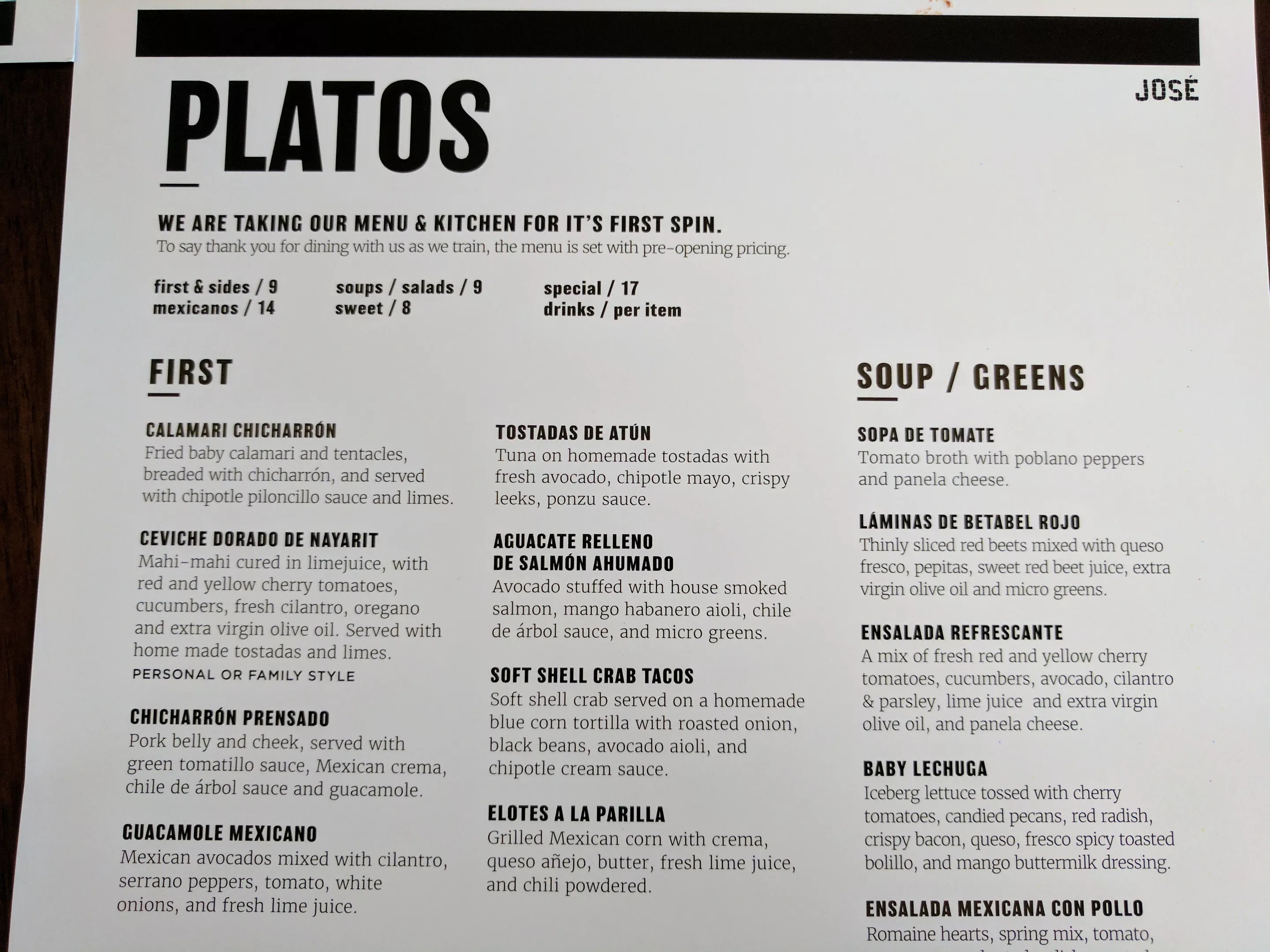 José is still fine-tuning its service and its menu, which is why menus haven’t been posted online. Prices aren’t finished, either. (Pictures of the temporary menu are at the bottom of this story.) But, it turns out, the restaurant is already as confident as its clientele. The enormous bar is lavishly appointed with mezcals, tequilas and scotch.