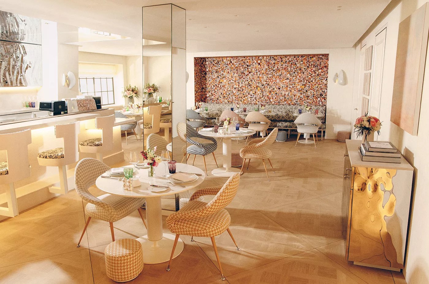 Café Dior sits on the second floor of the Dior boutique. Pass the $6,700 Lady Dior bags and $1,090 J’adior pumps, and head upstairs. There, a hostess welcomes you before you step into a world as Christian Dior might’ve imagined it. The light-filled, intimate room is filled with refined touches such as Dior’s houndstooth motif on the chairs filled with patrons of all walks of life, an artful mirrored bar back, fresh florals and nods to the fashion house throughout. Walk-in bar seating is limited to cocktails, coffee and $175 Caviar D’or, caviar service.