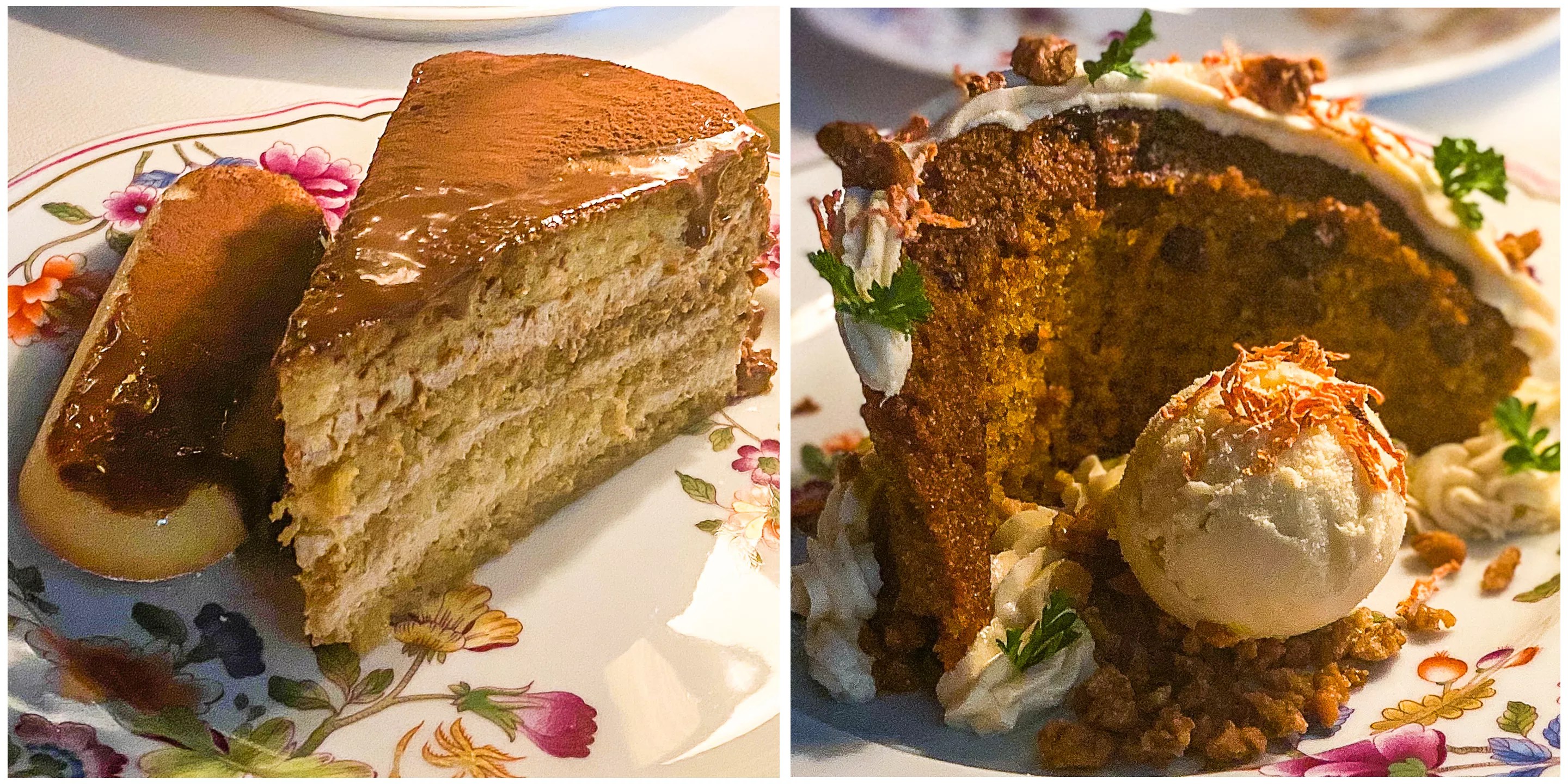 Dessert choices were tiramisu and carrot cake. The tiramisu, a four-layer affair sliced like a piece of Boston cream pie, was accompanied by a large lady finger on the side. It was not overly sweet or espresso-drenched.