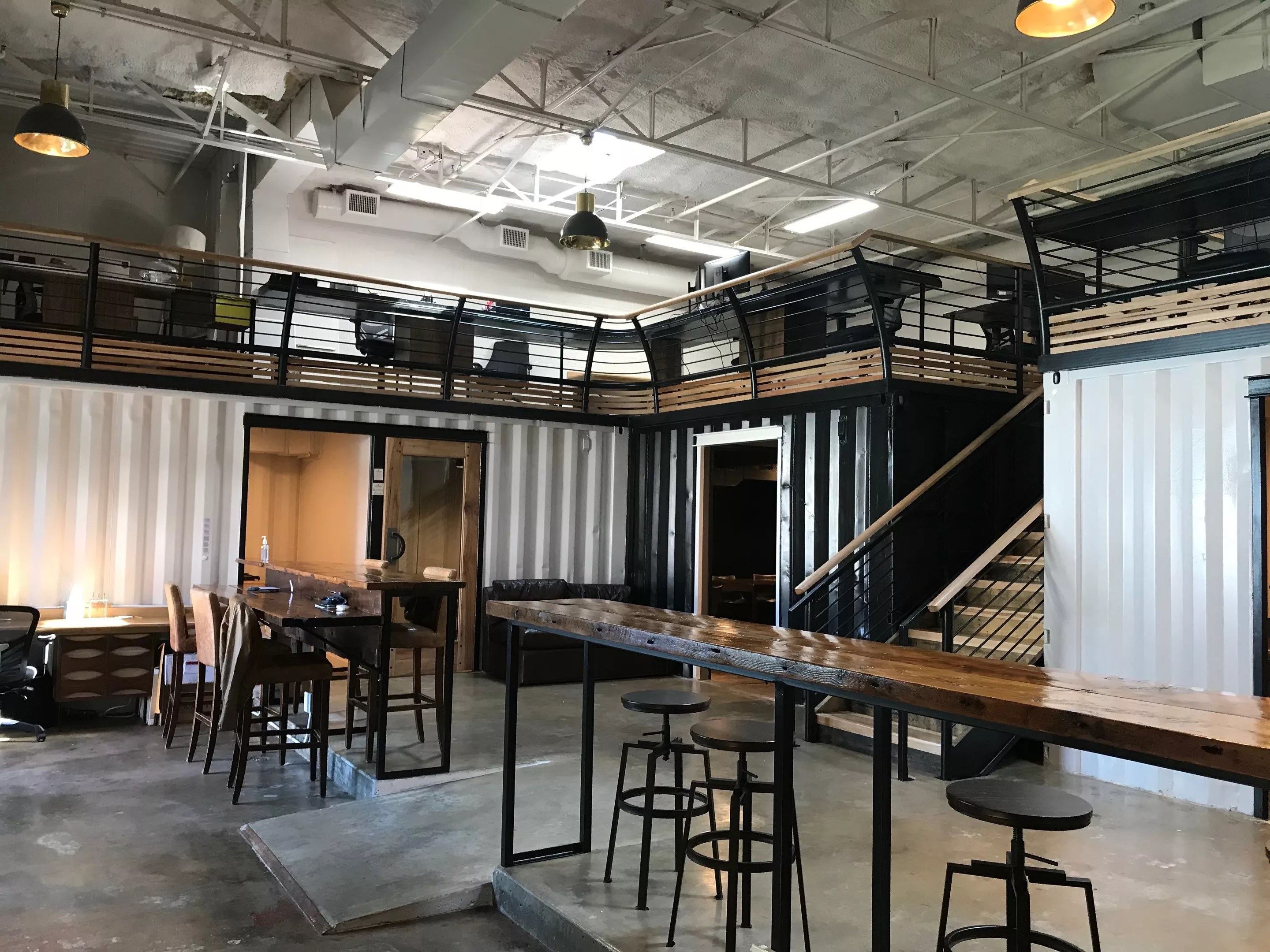 Communion’s co-working space makes creative use out of old shipping containers and what used to be an auto garage.