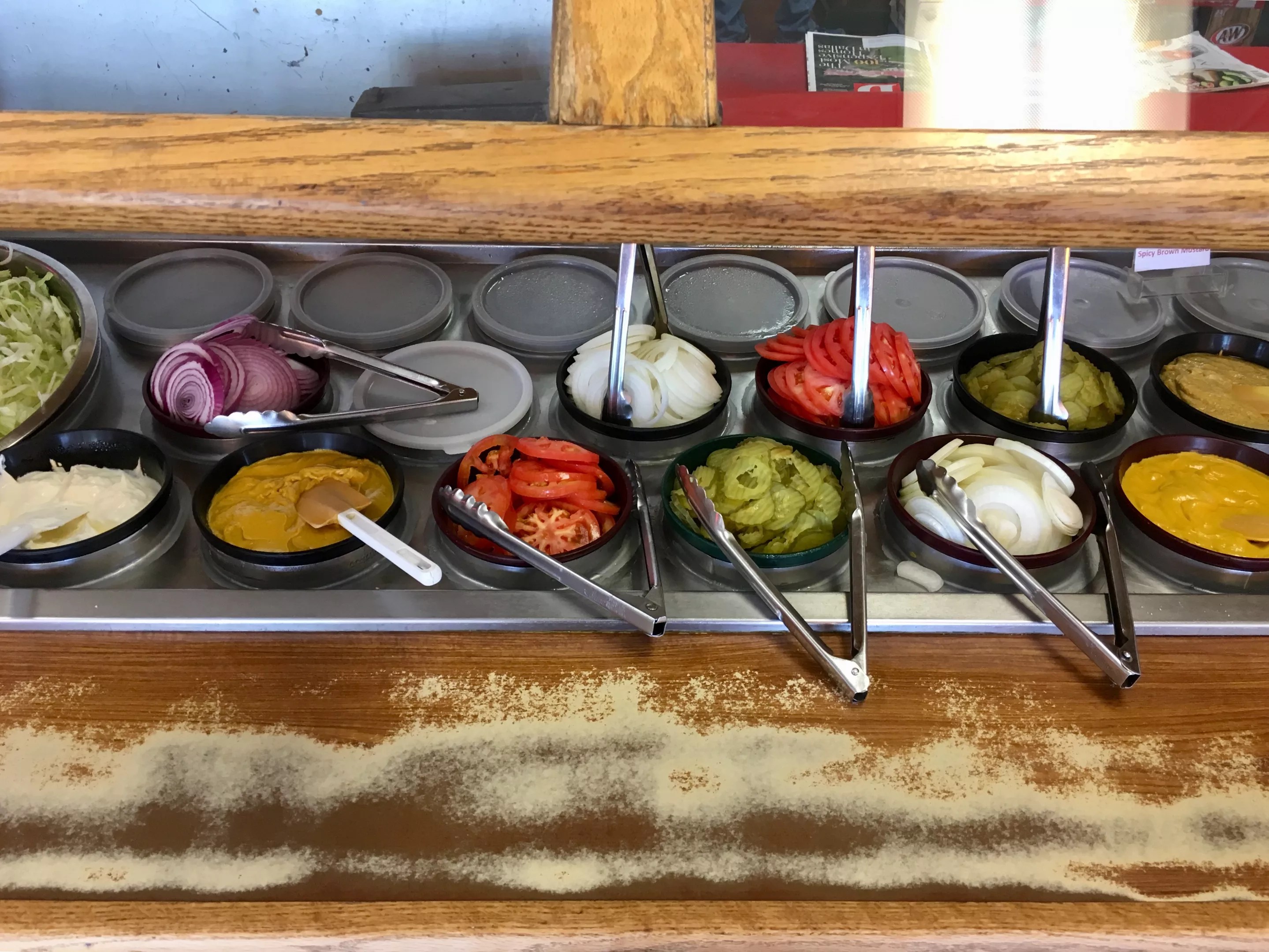 Who else in the universe is offering a full condiment buffet? Under wood panels, there are plastic tongs to pluck red onions, white onions, mustard, tomato, pickle discs and shredded lettuce. It’s a relic from the colonial era of burger joints. Yes, some restaurants have pickle bars or homemade sauces in squeeze bottles on an end table. But what family spot has a complete toppings bar? It’s like running into an LP of your favorite childhood band in your dad’s garage – you gaze into it with the mystery and wonder of the ark of the covenant. Sometimes the true spirit of an “old-fashioned” restaurant is the discovery that it could care less about the rules of a restaurant.