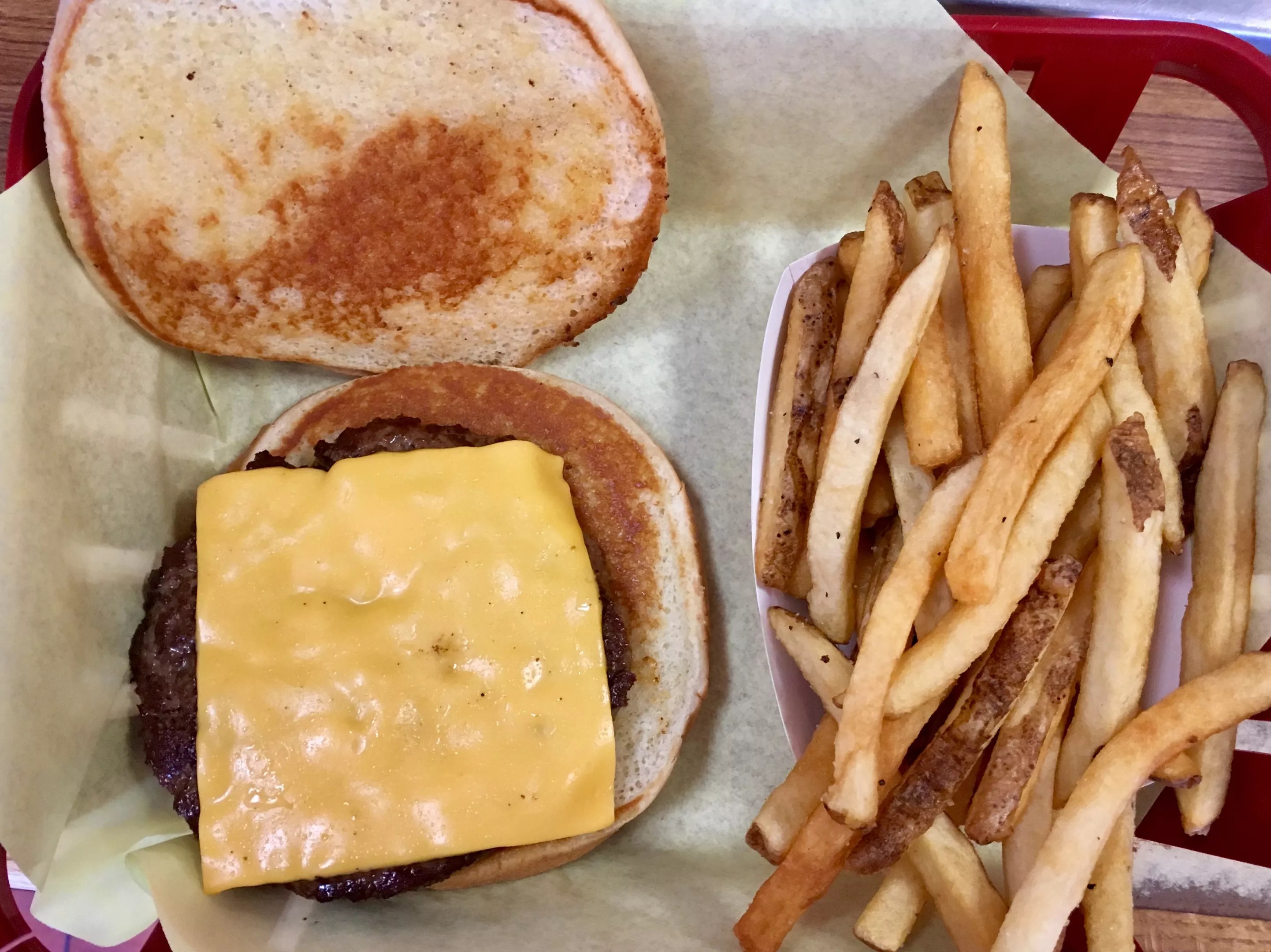 Who else in the universe is offering a full condiment buffet? Under wood panels, there are plastic tongs to pluck red onions, white onions, mustard, tomato, pickle discs and shredded lettuce. It’s a relic from the colonial era of burger joints. Yes, some restaurants have pickle bars or homemade sauces in squeeze bottles on an end table. But what family spot has a complete toppings bar? It’s like running into an LP of your favorite childhood band in your dad’s garage – you gaze into it with the mystery and wonder of the ark of the covenant. Sometimes the true spirit of an “old-fashioned” restaurant is the discovery that it could care less about the rules of a restaurant.