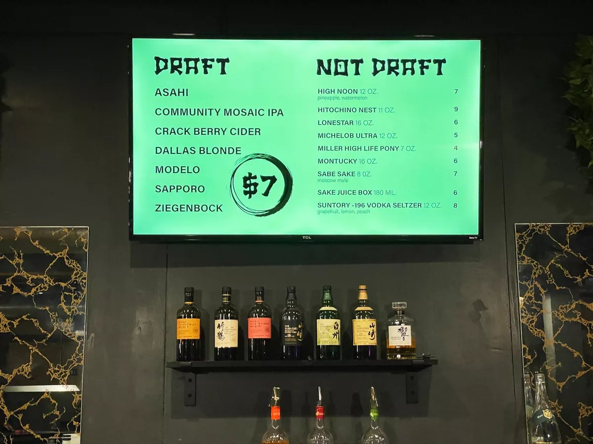 All of the upcoming events are posted on the Kanpai Instagram page. The most recent was the Say Less Music Festival, with a lineup of up-and-coming Dallas talent like La Bell and Justin King. Recent events include spray paint parties, board game nights and omakase pop-ups, a feature chef Carranza brought from Tare.