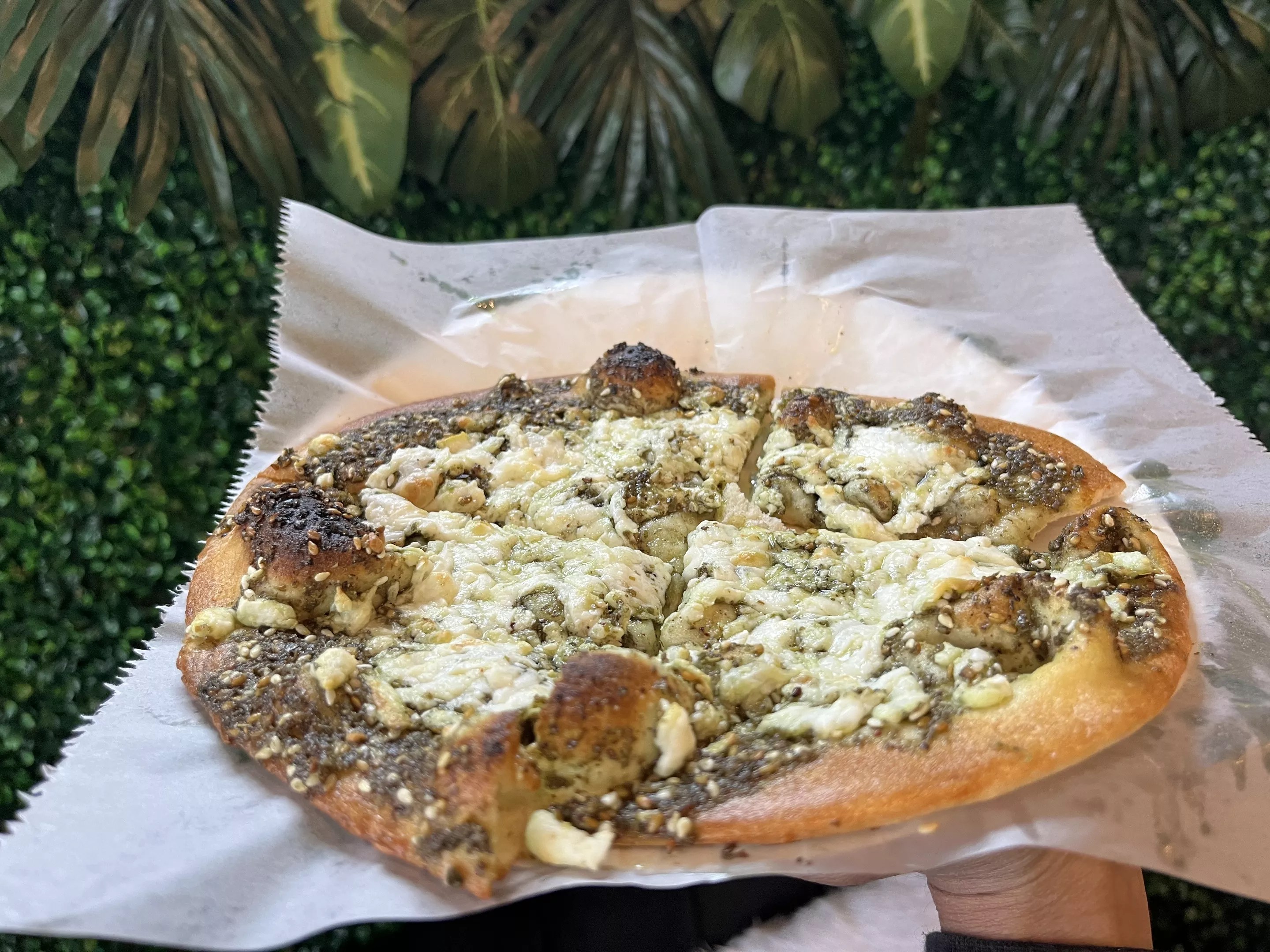 The fascination continues in a three-paged menu filled with food, beverages and traditional MIddle Eastern desserts. Try one of the 20 flatbread pies on the menu, charred-to-order in Karak’s traditional wood-fired oven. Pies like the manakeesh (a mincemeat pie tossed in spices) or the za’atar, topped with tangy herbs and Middle Eastern Akkawi cheese, all sell for between $2.99 and $6.99. They’re shareable, making them an almost dangerously cheap midday indulgence. Flaky samosa pastries pocketed with cheese or meats and buttery paratha wraps add more savory options to a sweet-dominated menu.