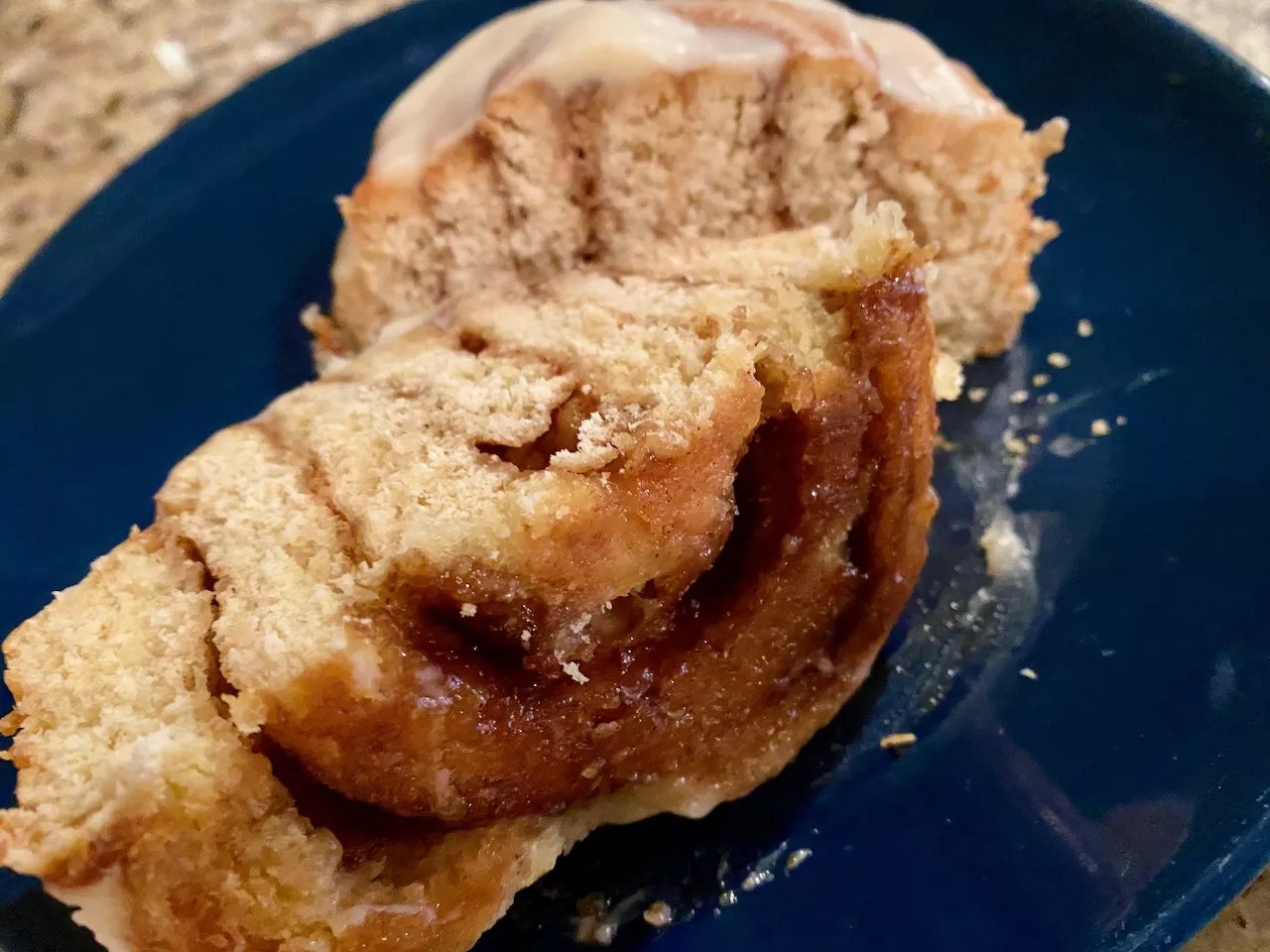 The top of these cinnamon rolls has a beautiful smear of thick icing, but the bottom is like looking under the hood. This is where the real story is told.