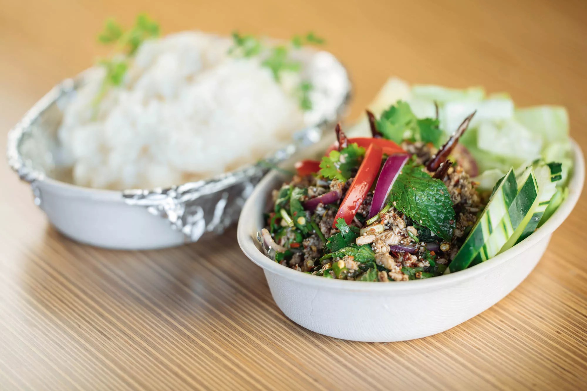 “Our food is going to be more if you were in Thailand, if you were in Laos. Nothing’s held back. The spiciness, the funkiness, that’s what we want to showcase in our food. We want to transport customers back to Laos or Thailand, as if they’re eating along the streets, enjoying the food, hearing the music as the cars go by.”