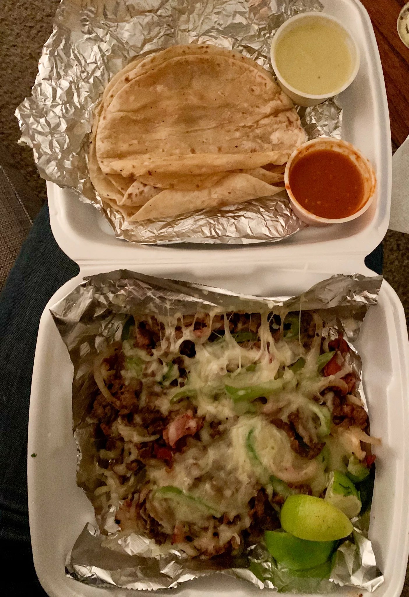 Good God, those tortillas stay hot, and forking the concoction – which is thoroughly cheesy after minutes in the car – into them for a bite is everything you need at 11:10 p.m. Hell, you need this bite any time of day