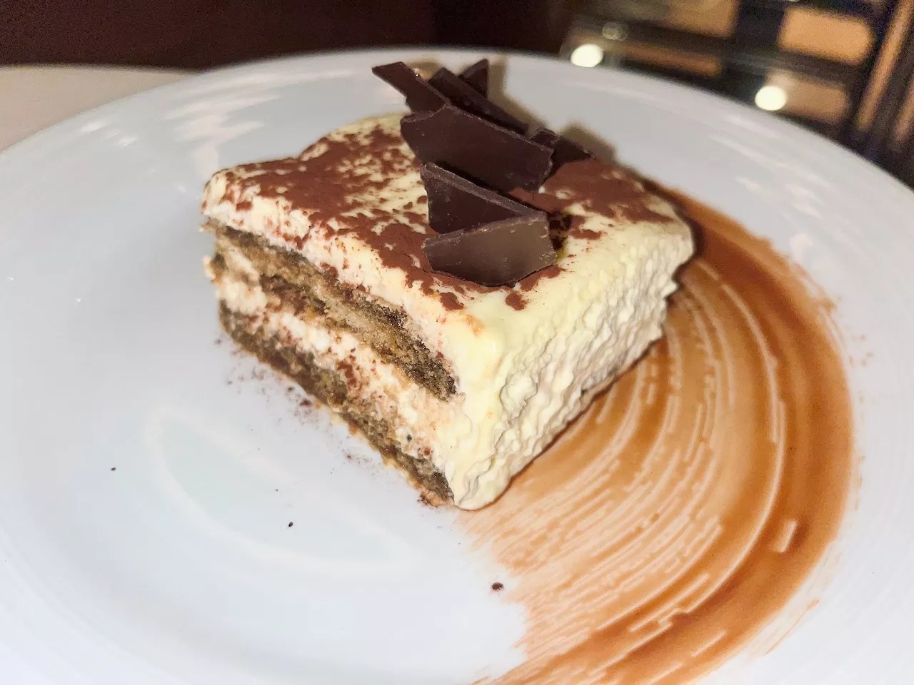 Meat-heavy entrées include the popular Ora King salmone arrosto ($34), a roasted salmon dish served with an Italian white sauce. The tagliata Toscana ($55) is a steak dish that comes topped with glazed pearl onions, sweet peppers and a creamy truffle sauce.