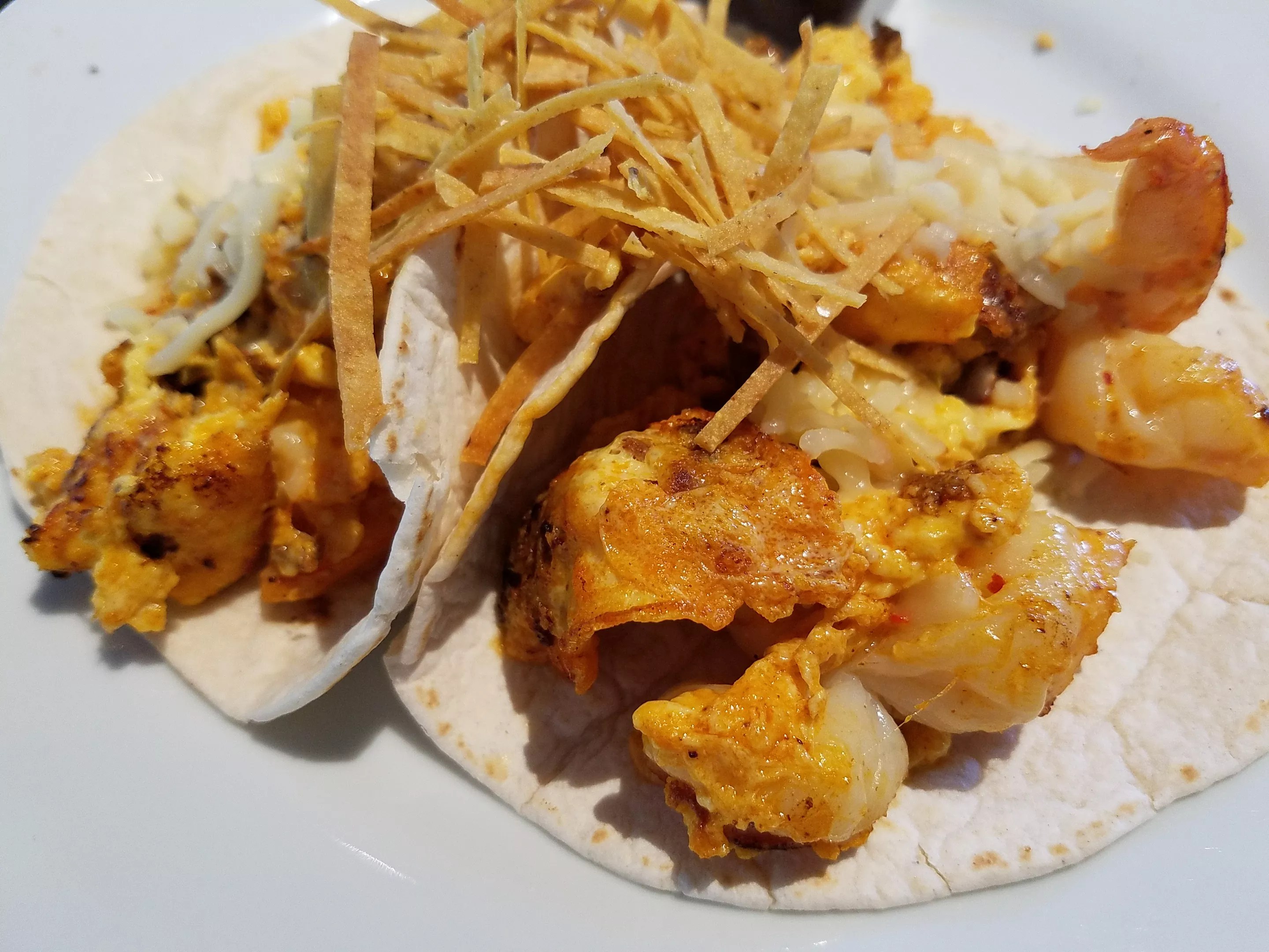 The shrimp migas, shrimp enchiladas and shrimp tacos ($18 for each dish) occupy approximately one-third of the brunch menu’s real estate. We opted for the sautéed shrimp and chorizo tacos in a nod to both our deep, abiding appreciation for tacos and our fear of brunch dishes that cost in excess of $25.