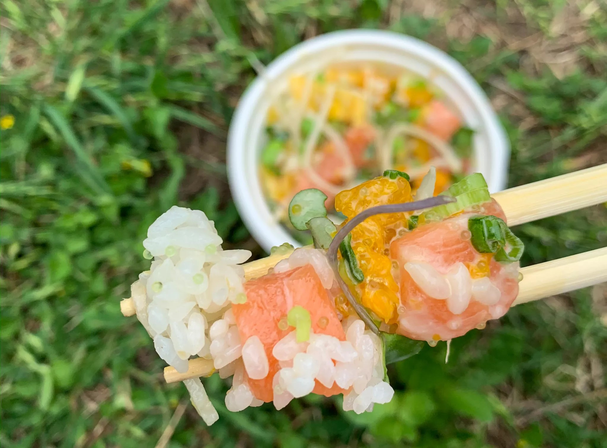 The bowl may be small, but it has plenty of salmon.