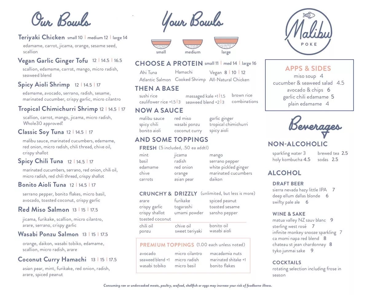 The poke restaurant comes from restaurateur and seafood slinger Jon Alexis, of TJ’s Seafood Market and Grill. Malibu Poke was able to stand out amid the swarm of trendy poke spots by tapping chef Matt McCallister (formerly of FT33, now of Homewood) to develop the menu.