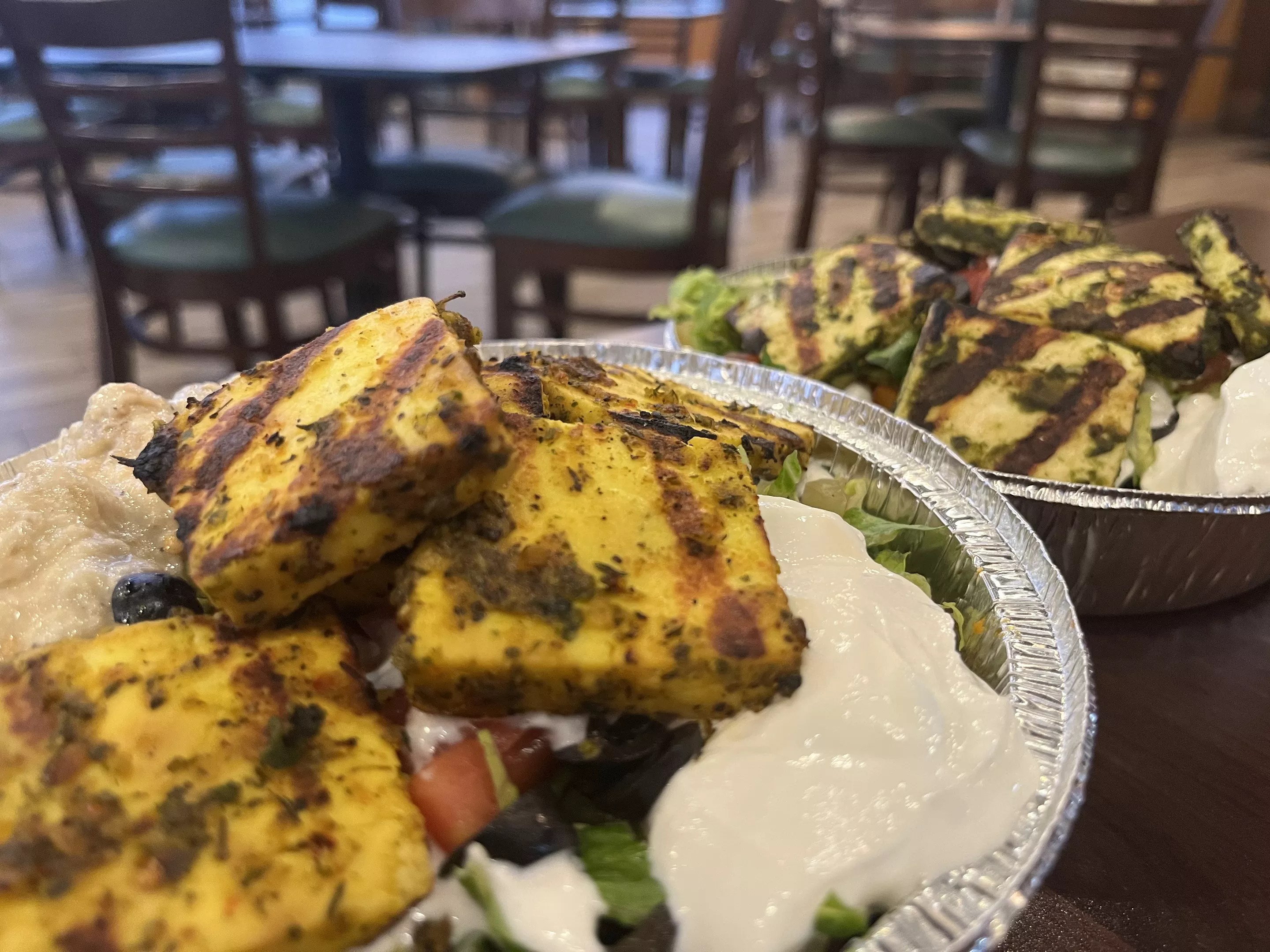 Finally, top your bowl off with one of Mango Leaf’s signature kebabs. They offer shrimp, chicken and paneer all marinated and grilled in spices ranging from turmeric-garlic to mint.