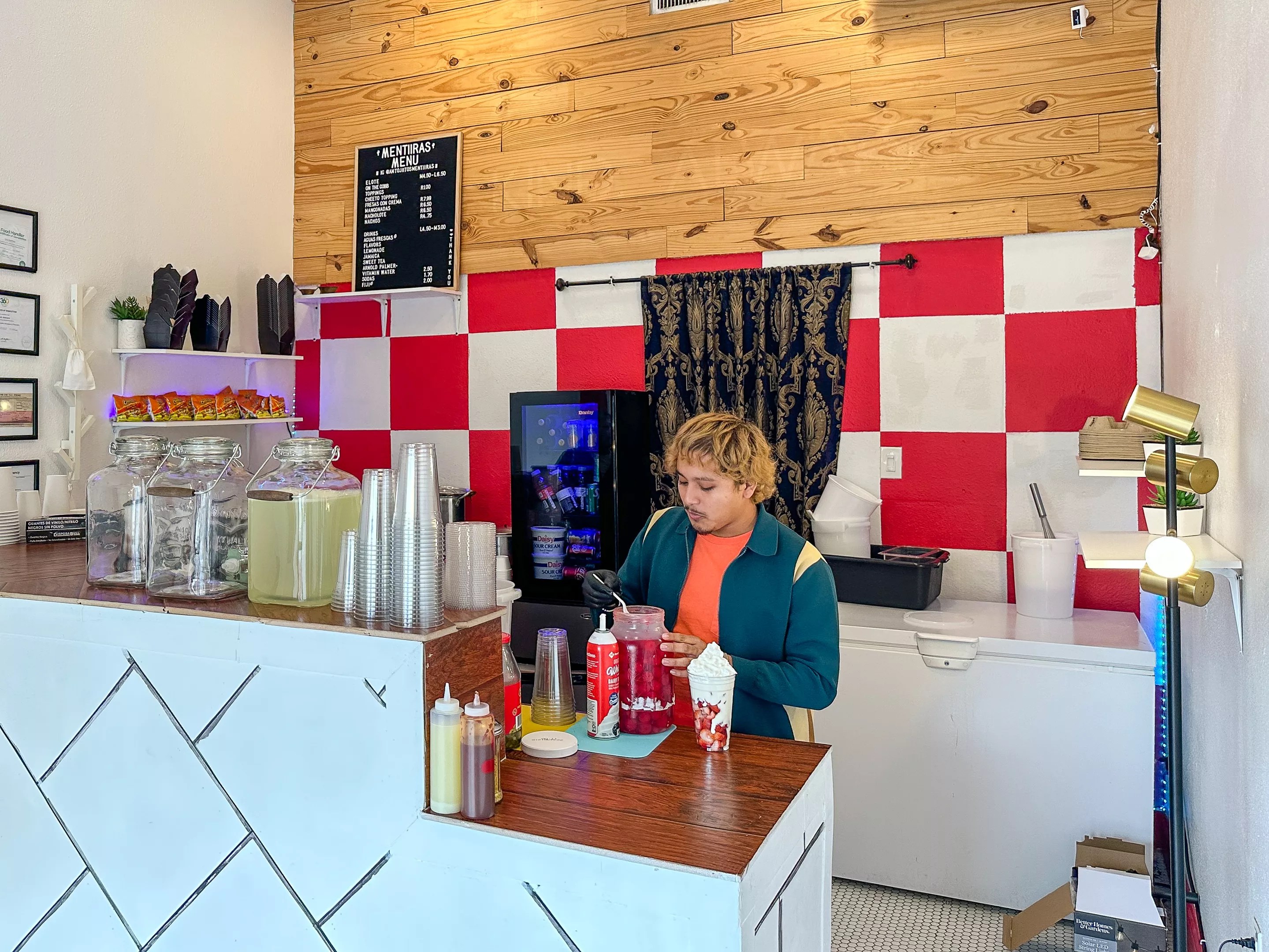 He christened his new place Mentiiras, which is a play on the word for “lies” in Spanish, because he says that in Mexican culture often someone will buy a cup of elotes (or another street snack) and ask if anyone else wants to buy some and be told no, only for that person to then help themselves to half of your treat.