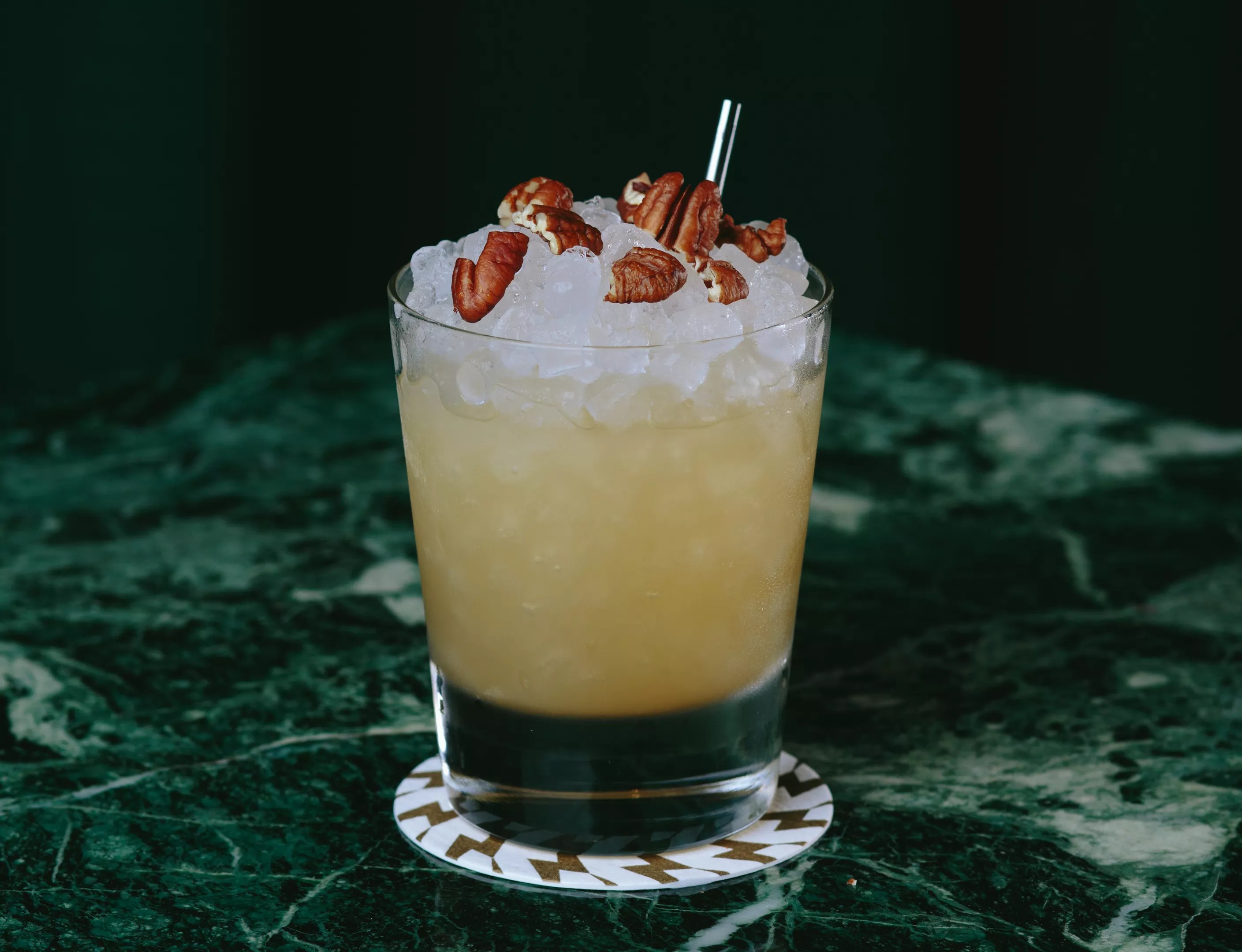 Nutcracker Flail ($14) – brown butter bourbon, pecan orgeat, lemon, cassia, cayenne pepper
