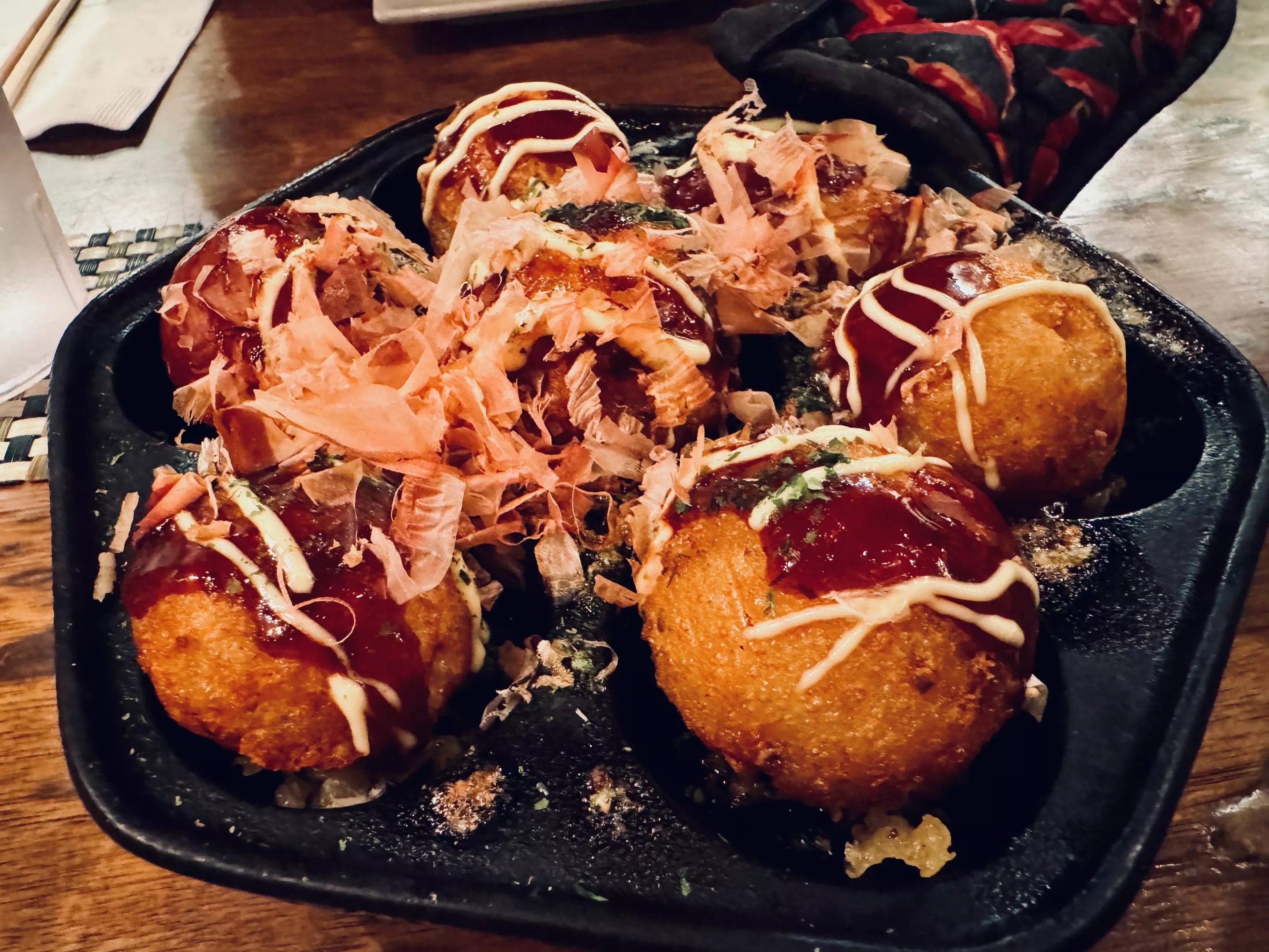 There are plenty of affordable small plates, sashimi, fried oysters, noodles and ramen. We’d be remiss not to mention the mandatory takoyaki, octopus puffs topped with wiggling bonito flakes.