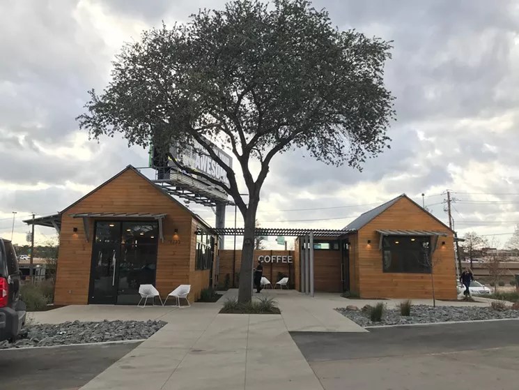 Houndstooth Coffee’s new solar-powered coffee shop sells single-origin espresso and pastries from inside two Lake Flato-designed tiny houses.