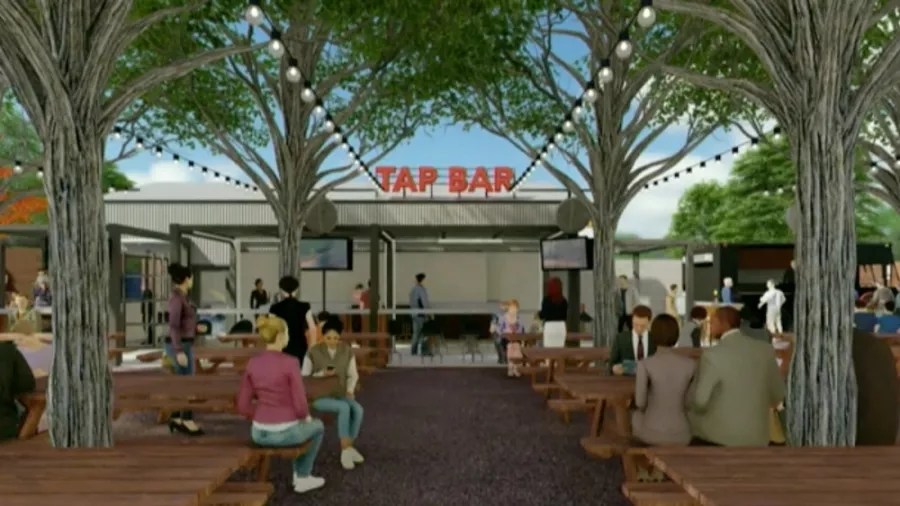 The biergarten will have two outdoor bars housed inside repurposed shipping containers and will offer a full menu of cocktails and 50 beers on draft and in cans. There will be cabanas for rent, games to play and fire pits for s’mores for when the weather cooperates.