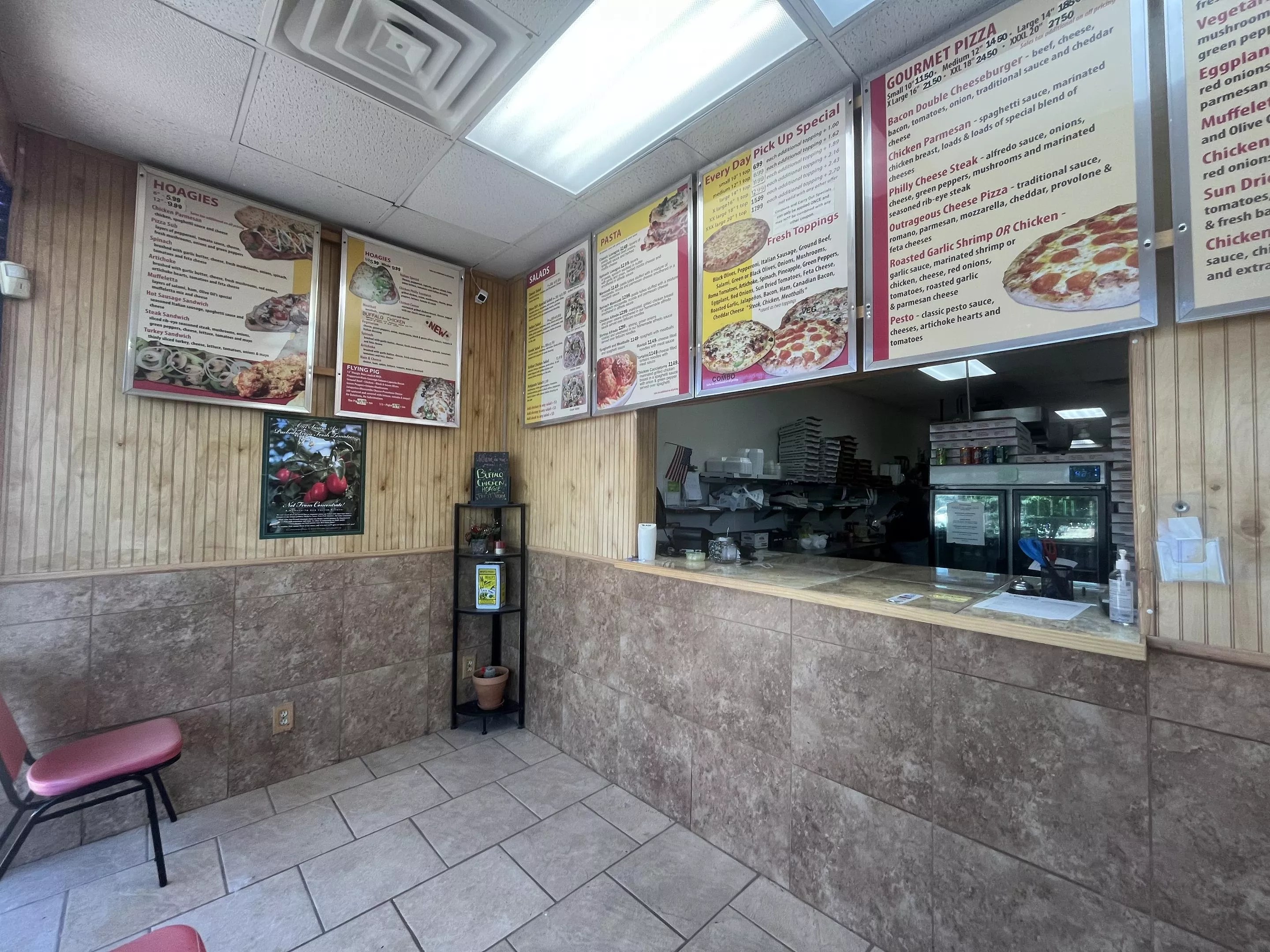 Olive Oil’s also offers wings, breadsticks, pastas and hoagies. The Flying Pig is a foot-long monstrosity stuffed with eight meats and six vegetables. “No substitutions” in bold assures us that Olive Oil’s takes pride in its signature creation.
