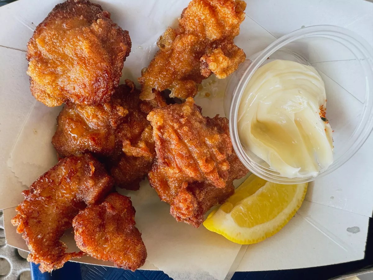 Chicken karaage (and a side of Kewpie mayo that we dipped into before grabbing a photo) is like Japanese comfort food.