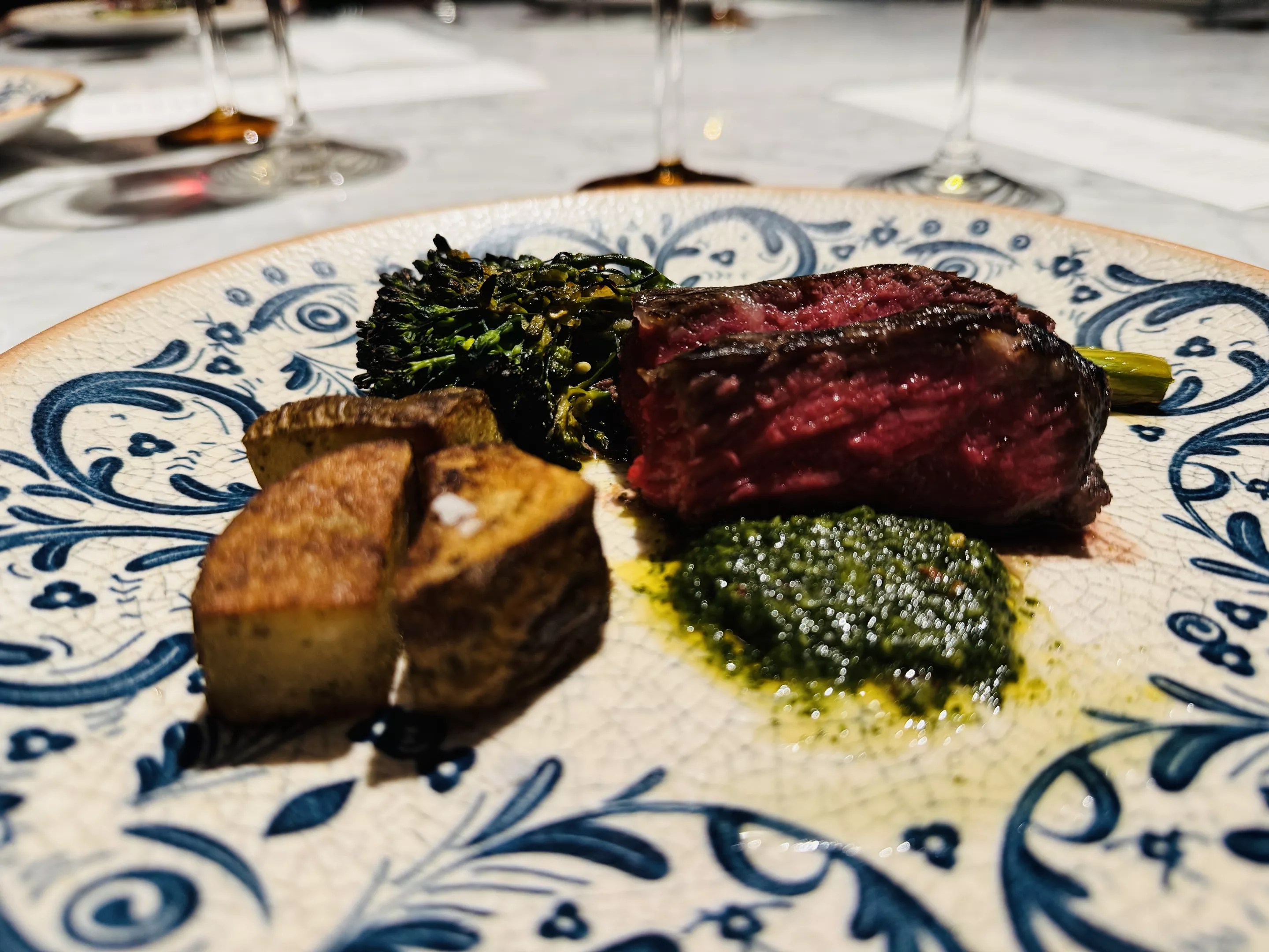 That ethos is what drives Palato’s menu. Instead of piling on flavors and flourishes, Sakai strips dishes down to just the essentials. A quite literal example, the New York Strip, is seasoned just with salt, no pepper in sight – and cooked so perfectly you’d never dream of adding anything else. Each decision is strategic and intentional, like using bucatini, a hollow noodle, instead of spaghetti as a vessel to hold more sauce.
