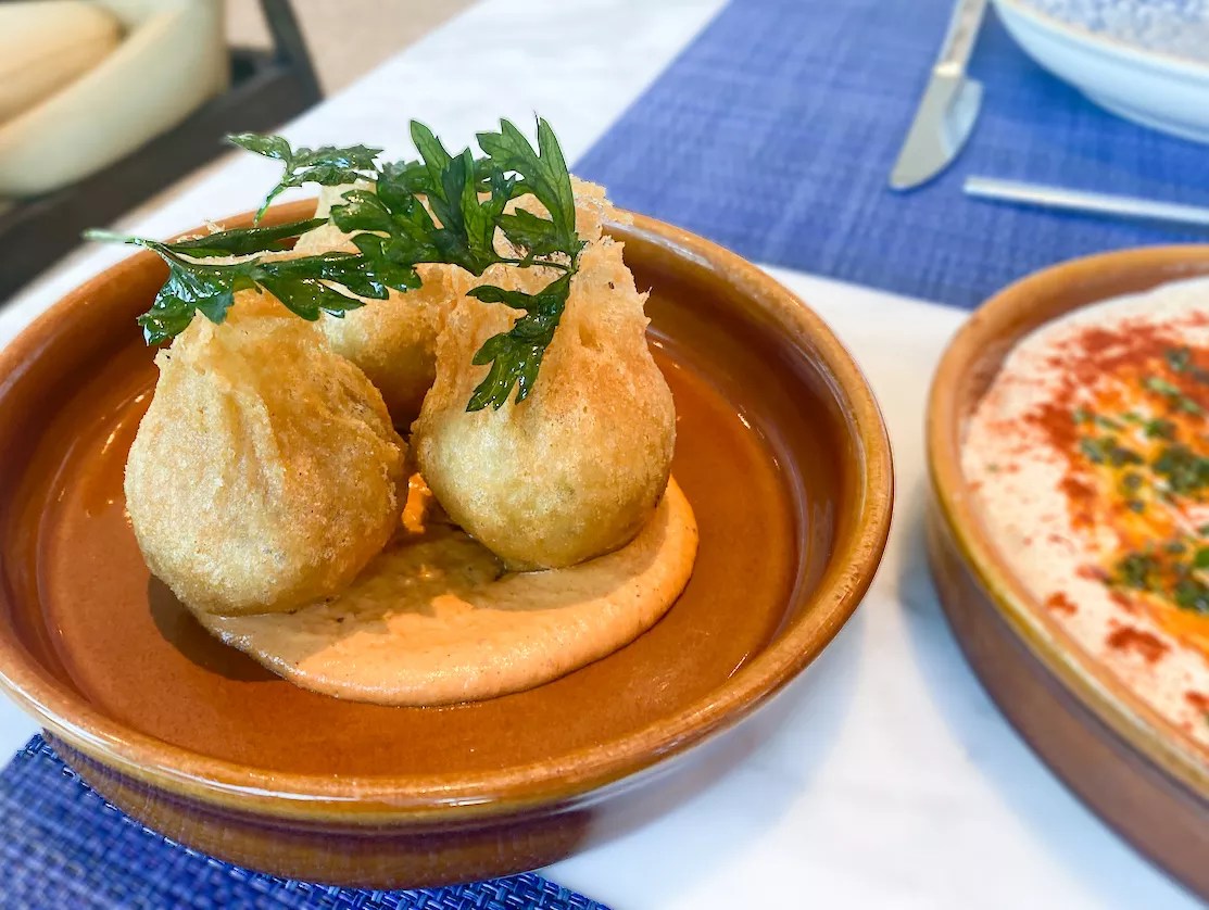 Bacalao fritters over a tomato aioli.