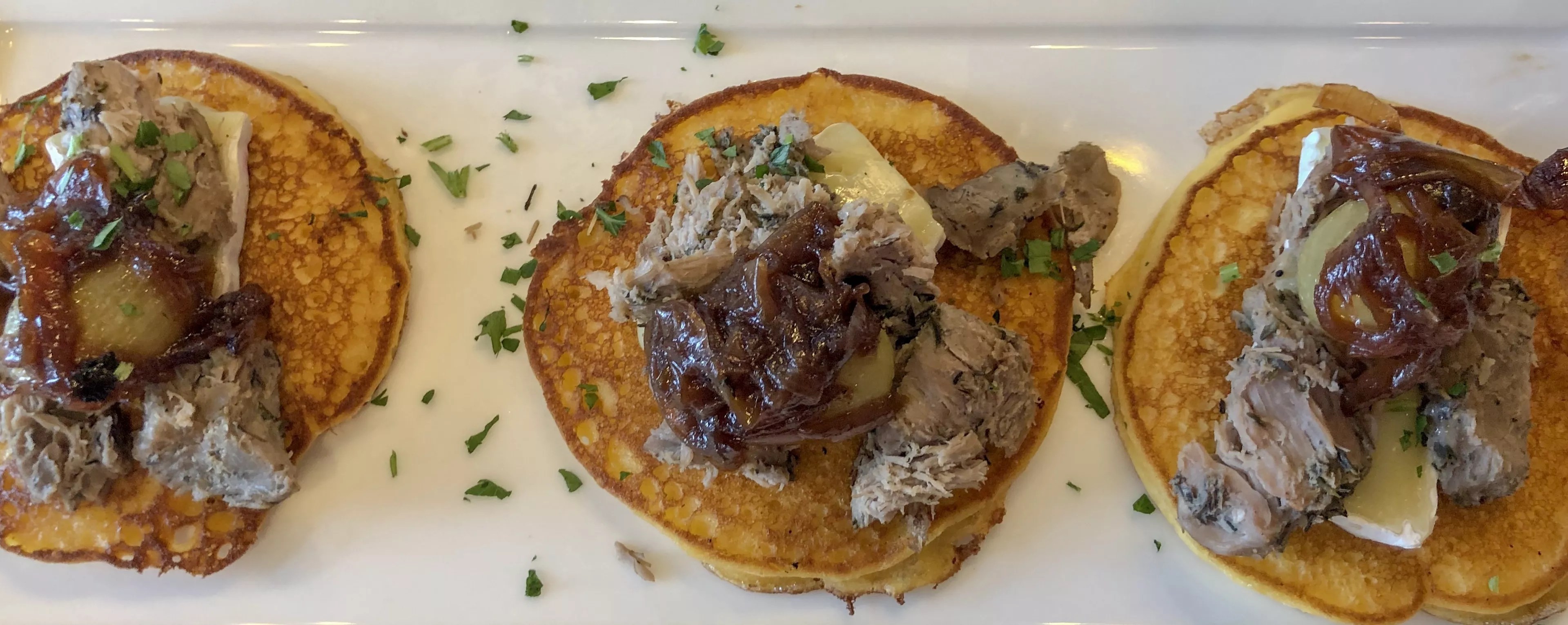 The duck confit pancakes ($15) are a nice idea, and Perle nearly pulls them off. On a recent visit, the duck was a bit overcooked, but the sweet potato pancakes, roasted grapes, caramelized shallots and warm brie work wonderfully well.