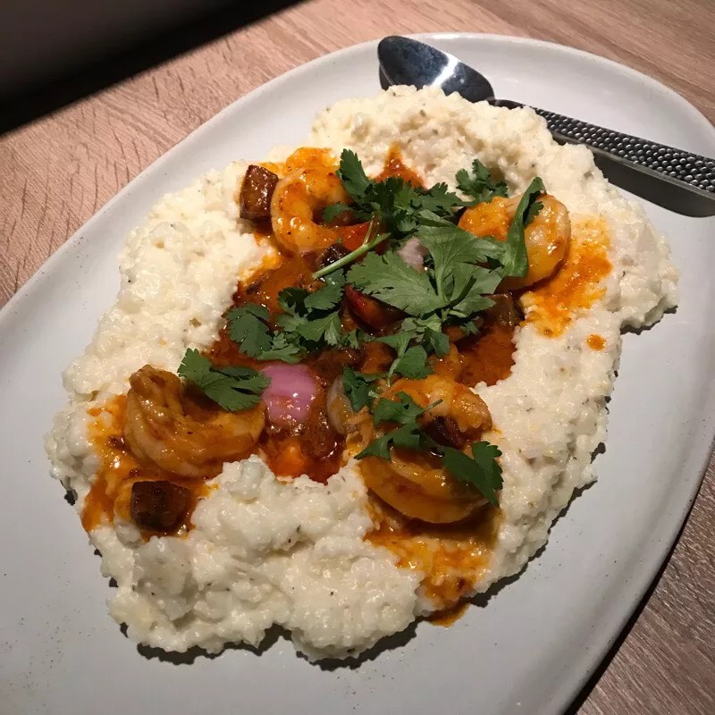 3. Because everything is sharable, menu items are plated as such. To accommodate this serving style, the shrimp and grits were served on a plate.