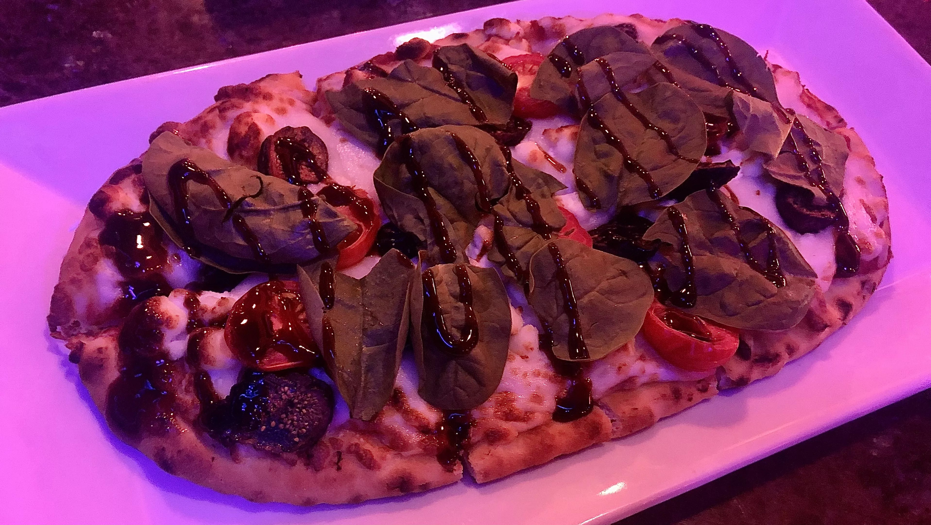 The upside of this pizza is that it didn’t skimp on the cheese. Its downside was that it, like the restaurant itself, pulled in a few too many directions. The crust of the flatbread was nice, but the addition of tomato-based sauce and cherry tomatoes introduced an acidic and savory flavor that clashed with the sweetness of the figs and tanginess of the goat cheese. Marinara and figs just wasn’t our favorite combo.