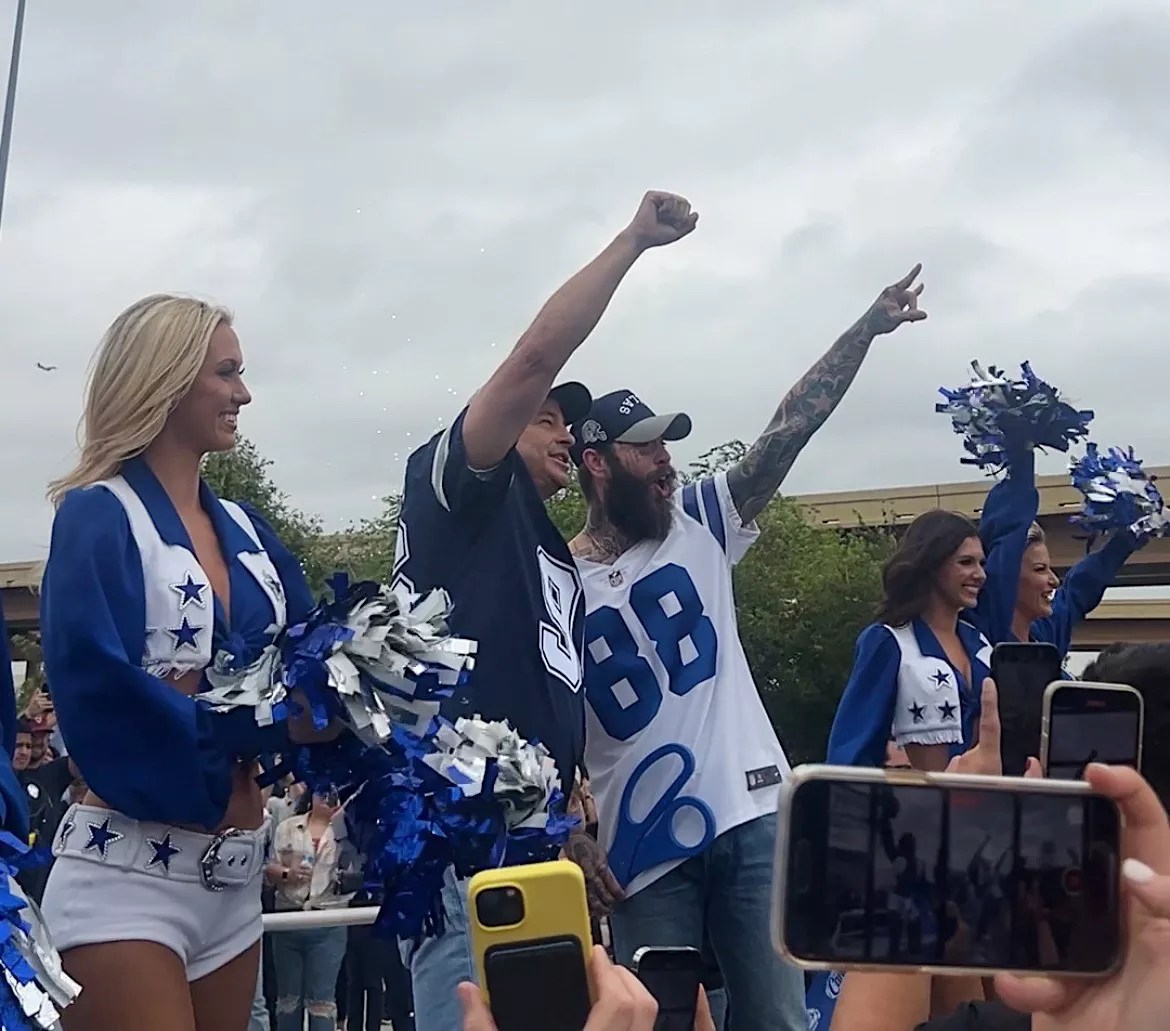 Caniacs and fans of Post Malone turned up by the hundreds today for the opening of Raising Cane’s new Dallas location. The lastest outpost of the restaurant chain is a collaboration between recording artist Malone and the Dallas Cowboys, as Malone wanted to honor his hometown team – and his favorite chicken-strip spot – in a flashy way.