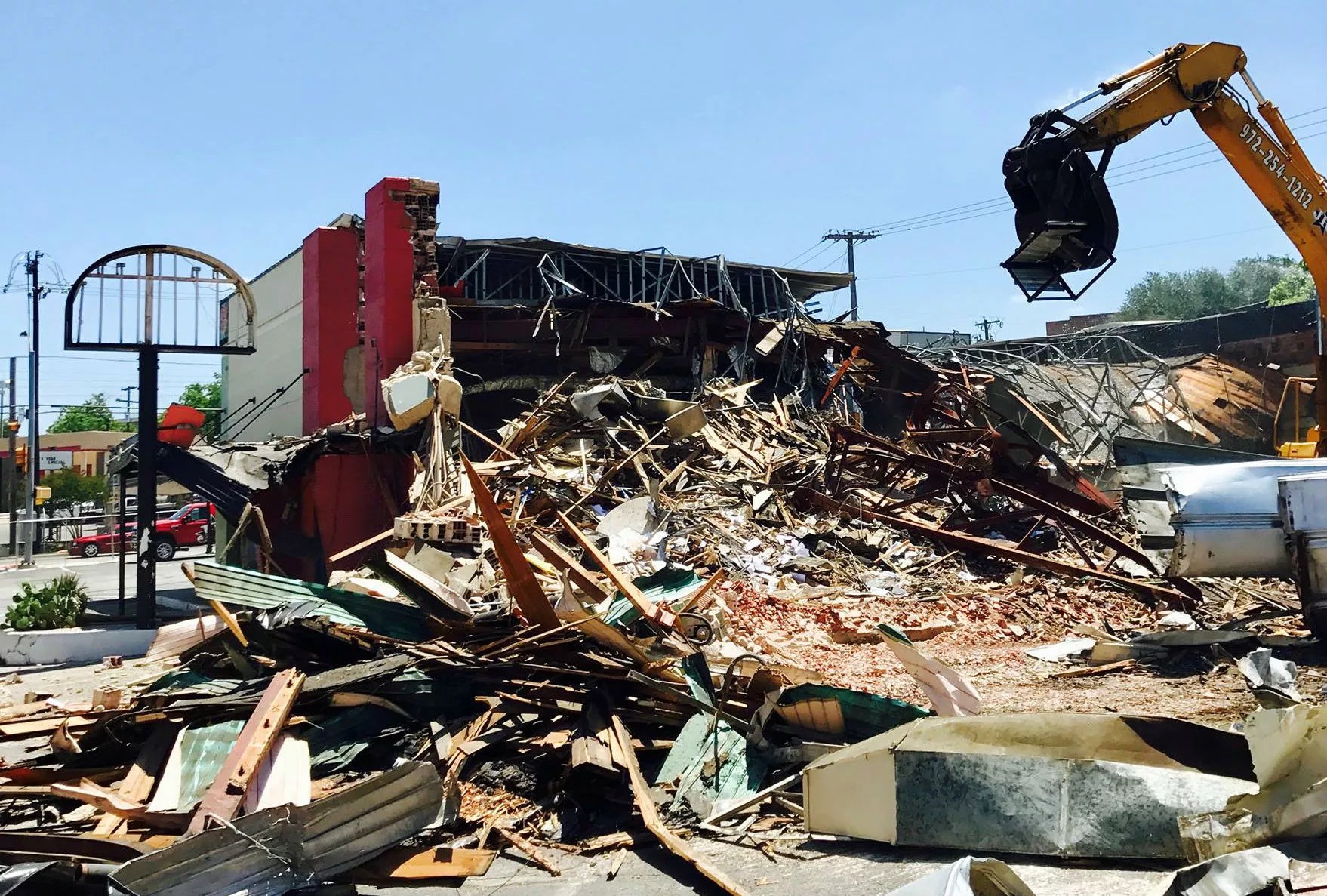 “Developers don’t want a fight,” he said. A banner that hung at El Corazon on the morning of its demolishing read: “With this building goes part of our Oak Cliff heritage and history. We will not support a business that destroys a historic building.”