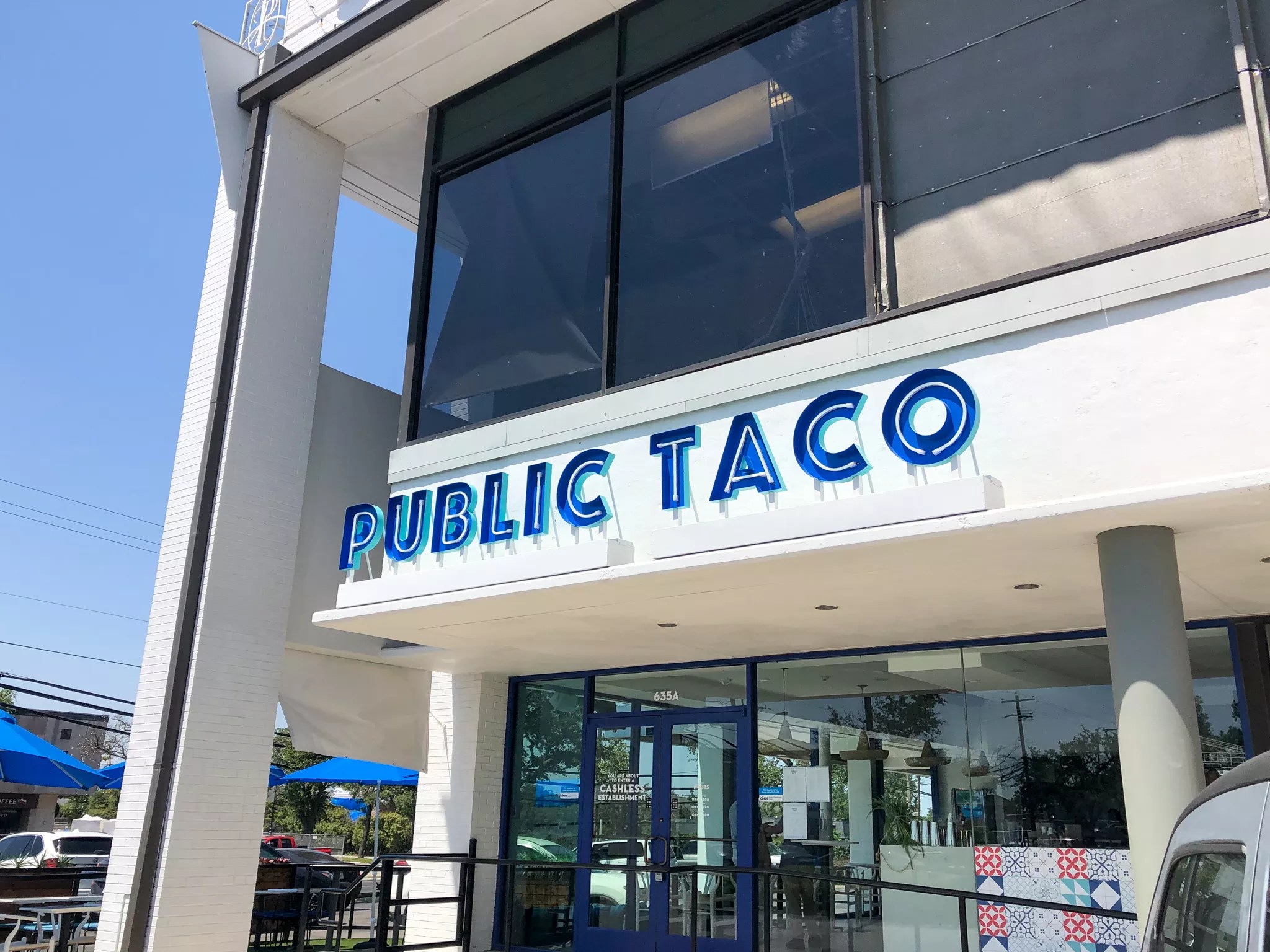 Public Taco, 5959 Royal Lane, Suite 123 (North Dallas). Open 11 a.m. to 9 p.m. Monday through Friday; 10 a.m. to 9 p.m. Saturday; and 10 a.m. to 8 p.m. Sunday.