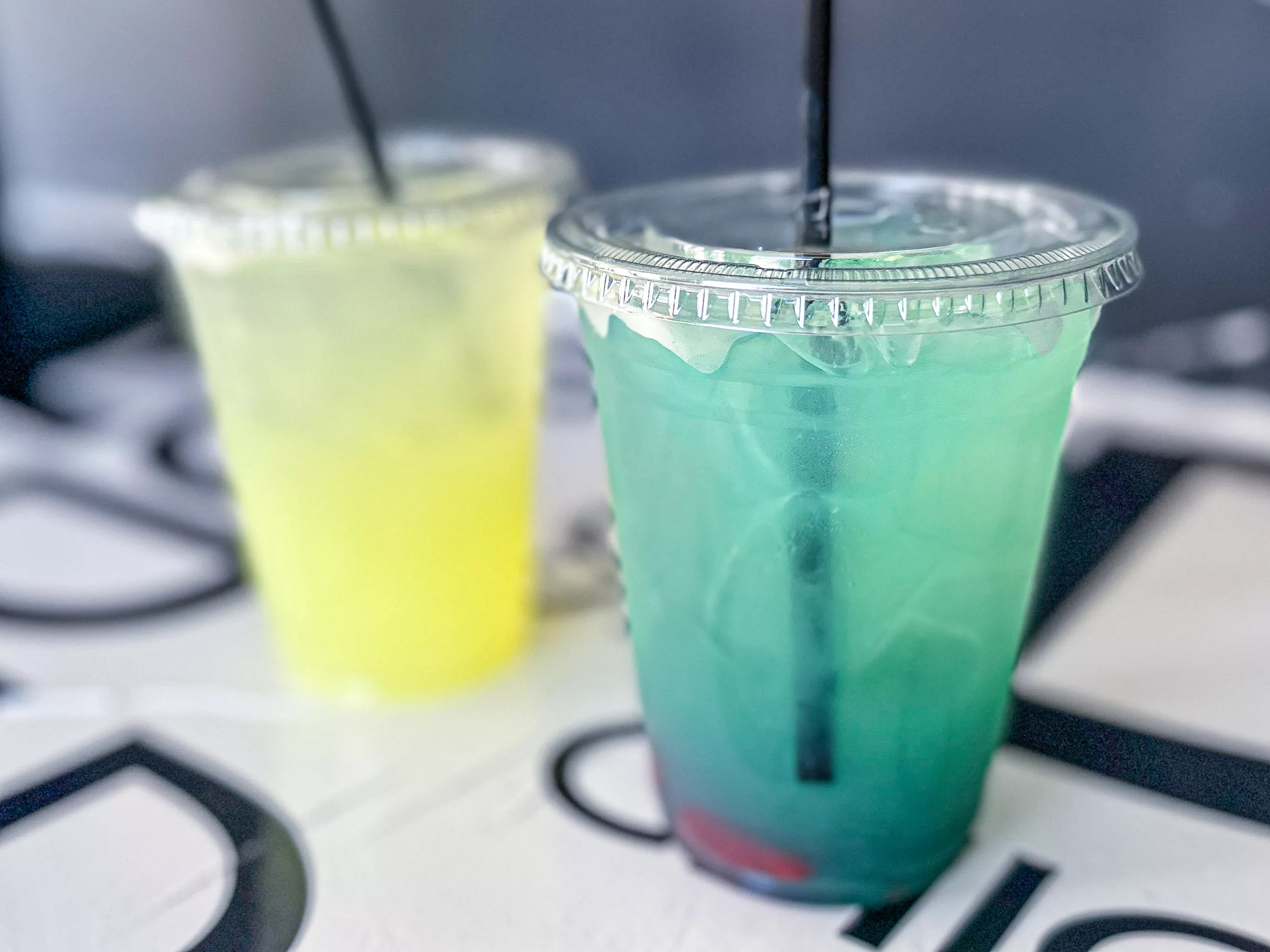 The surprise drink turned out to be a blue raspberry lemonade with pieces of strawberry lounging at the bottom of the cup. The lemonade was lemonade. Both were fine, if a bit on the sweet side, but this is to be expected. The surprise was a bit light on the raspberry flavor, but it looked good.
