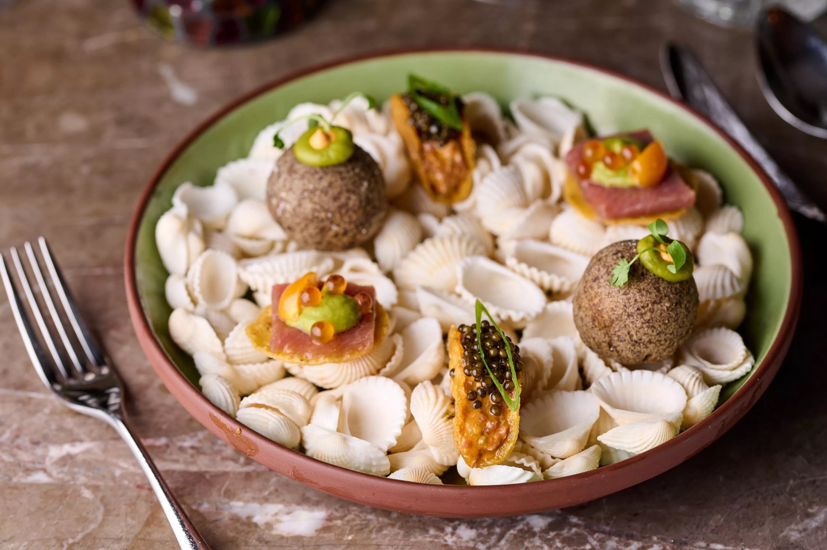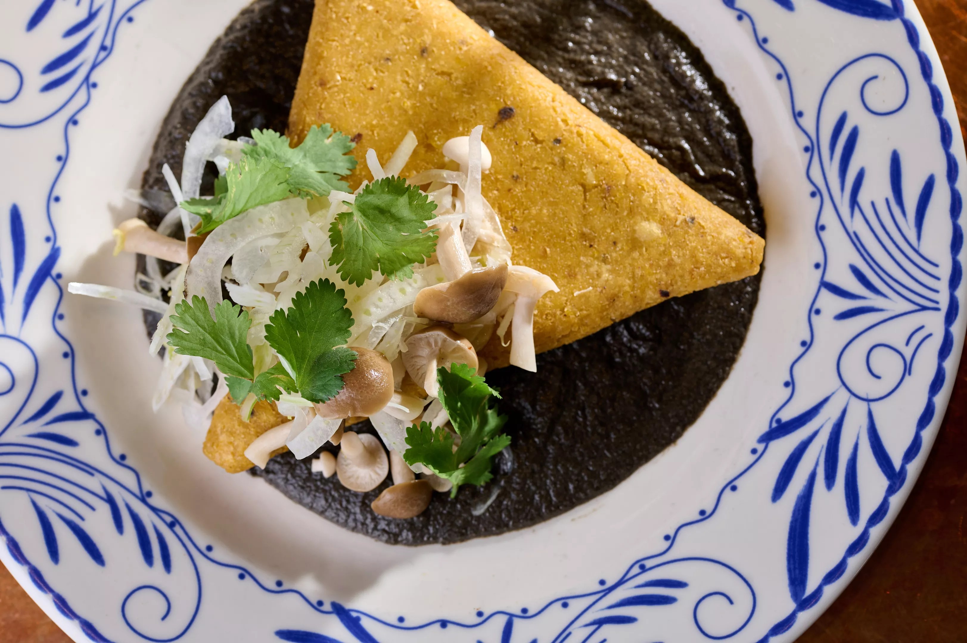 In-house maza selections include from-scratch tetelas over a rich maitake sauce.