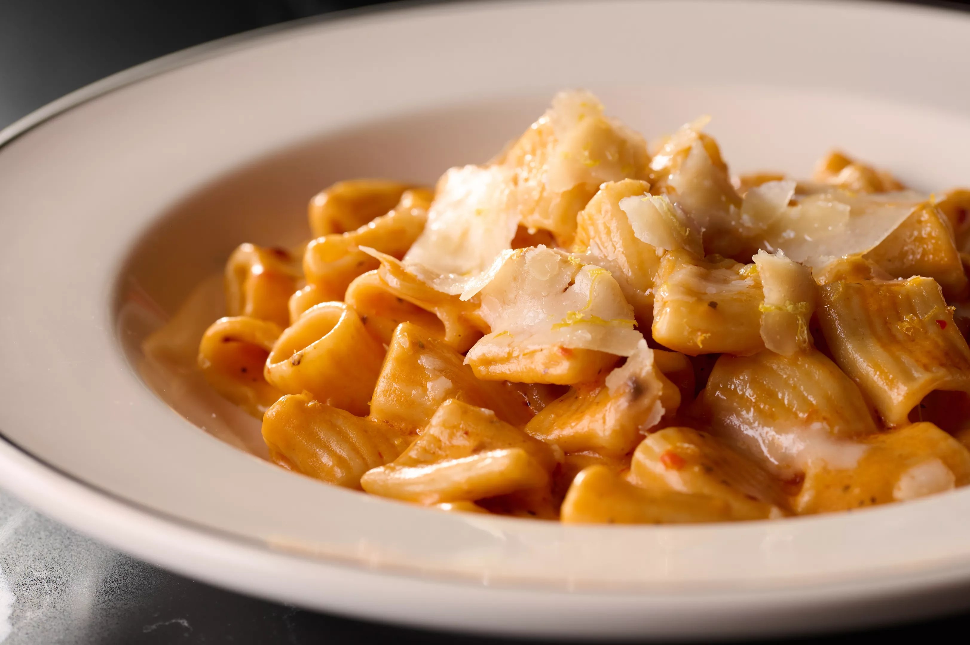 Pesto fusilli ($22) was possibly our favorite pasta dish. The bright and herby pesto filled every nook and cranny of the fusilli, while chunks of flavorful rosemary chicken breast and sweet-tart slivers of sun-dried tomato added layers of complexity. The spicy vodka rigatoni ($18) we tried on our first visit lived up to its name as well. Our bartender/waiter offered the option of getting the rigatoni with either chicken or sausage. We opted for sausage, but when the plate arrived it was chicken. Our waiter was quick to acknowledge the mistake, but the corrected dish took another 20 minutes to arrive, as if the message to expedite a replacement entrée was lost in the shuffle.