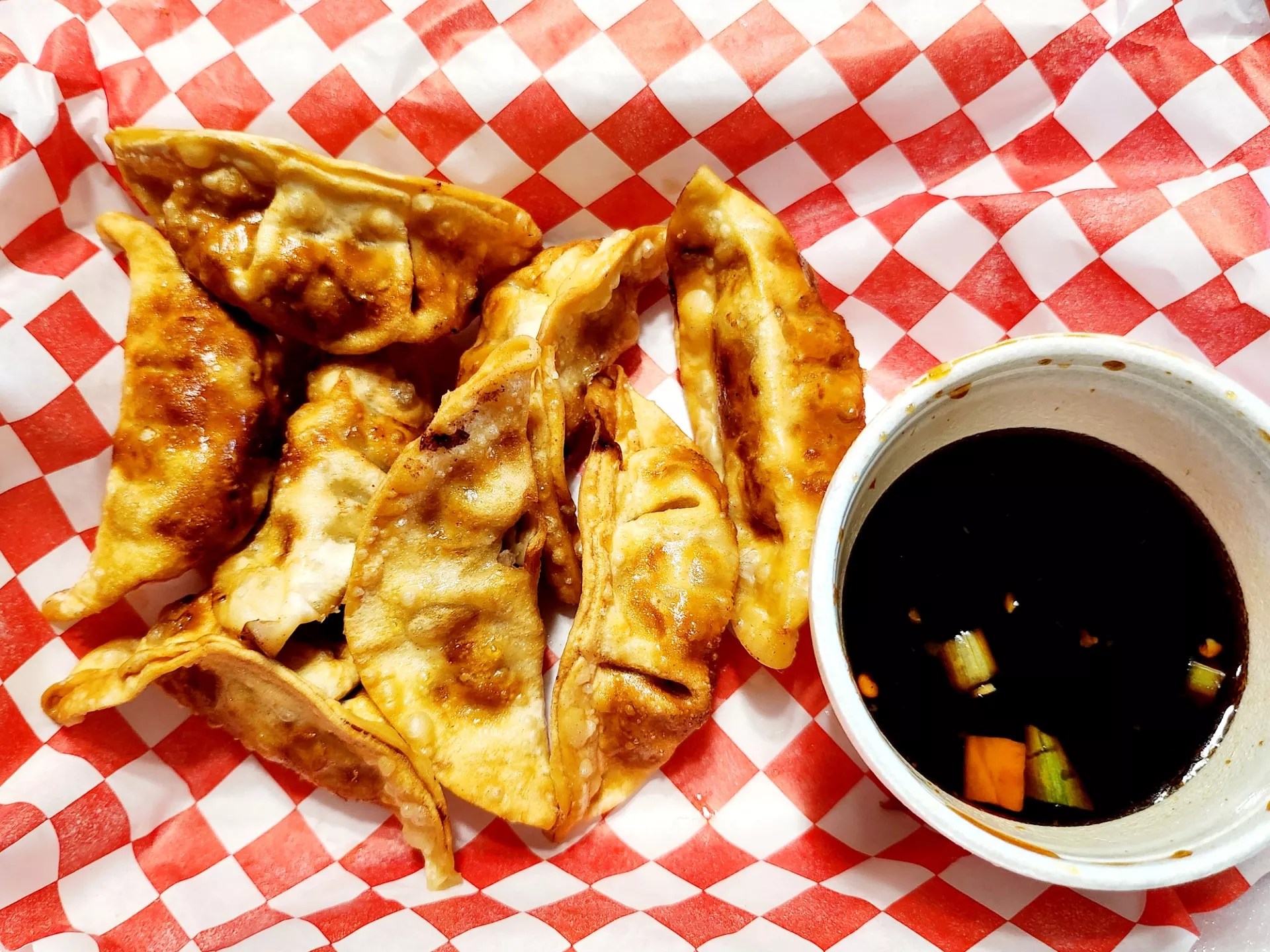 First up was a serving of eight fried pork dumplings ($7.99). Fried crispy and served with a savory-sweet Asian-inspired dipping sauce, these dumplings were a solid appetizer. No complaints.