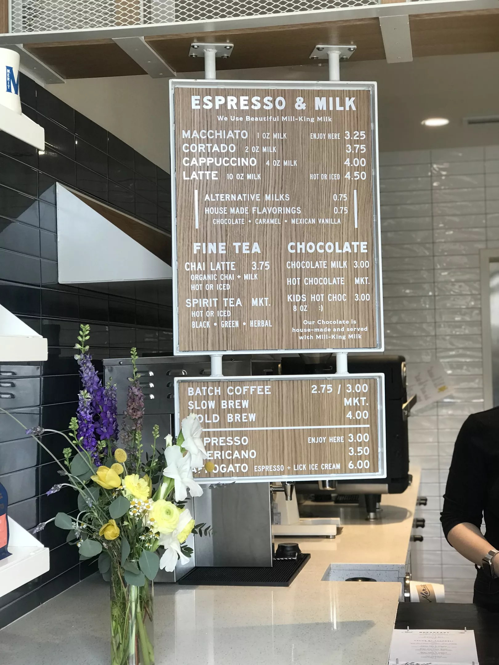 The menu at Merit Coffee