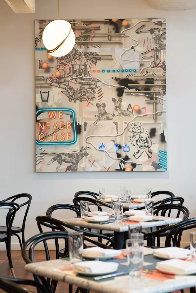 Everything in Sassetta’s interior dining area is fun.