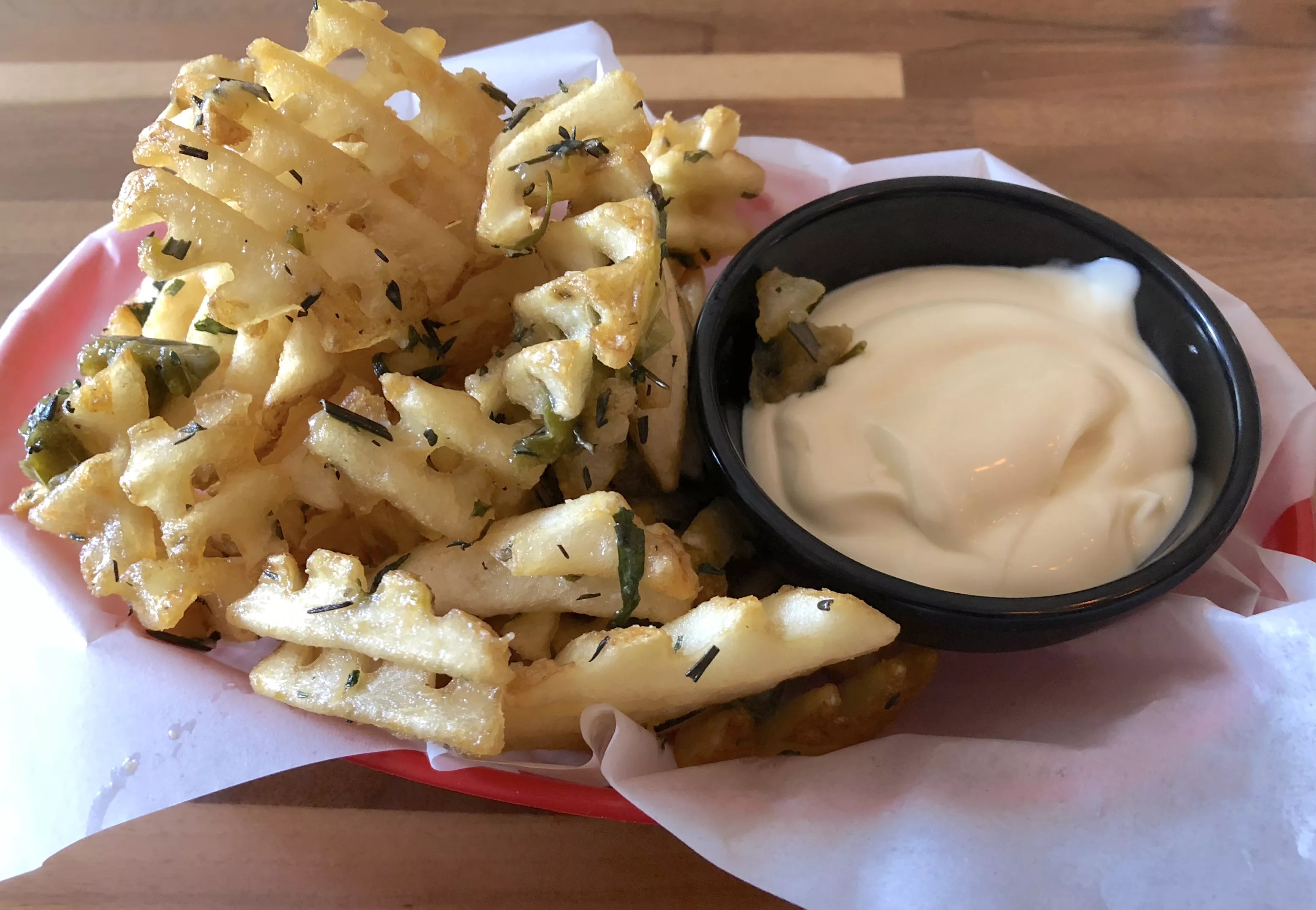 The “danks,” waffle fries tossed with onion, pepper and herbs.