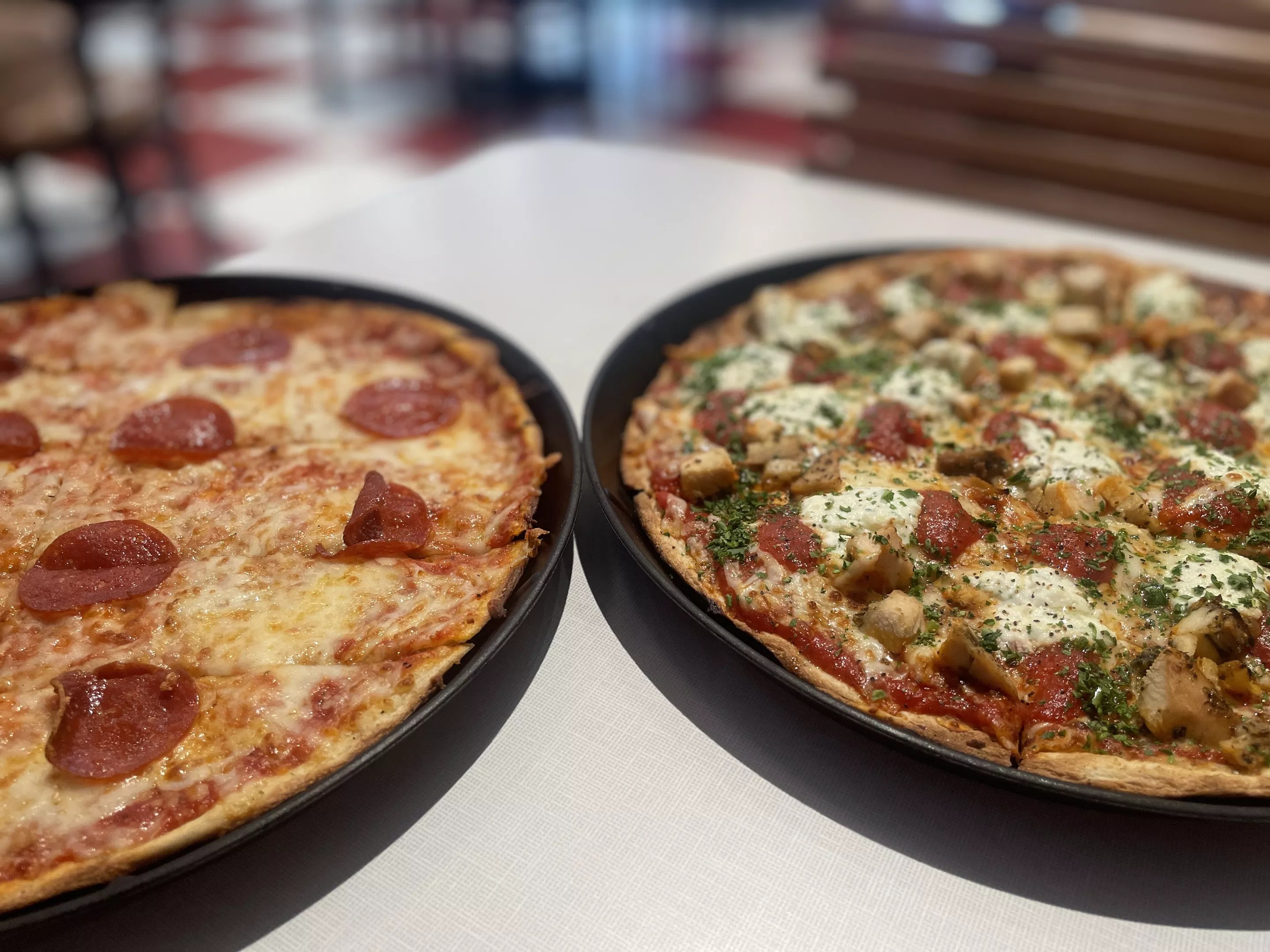 Pizzas come on a thin-style crust with a housemade sauce. The Light & Bright is a delightful combination of grilled chicken, ricotta cheese, sauce and parsley.