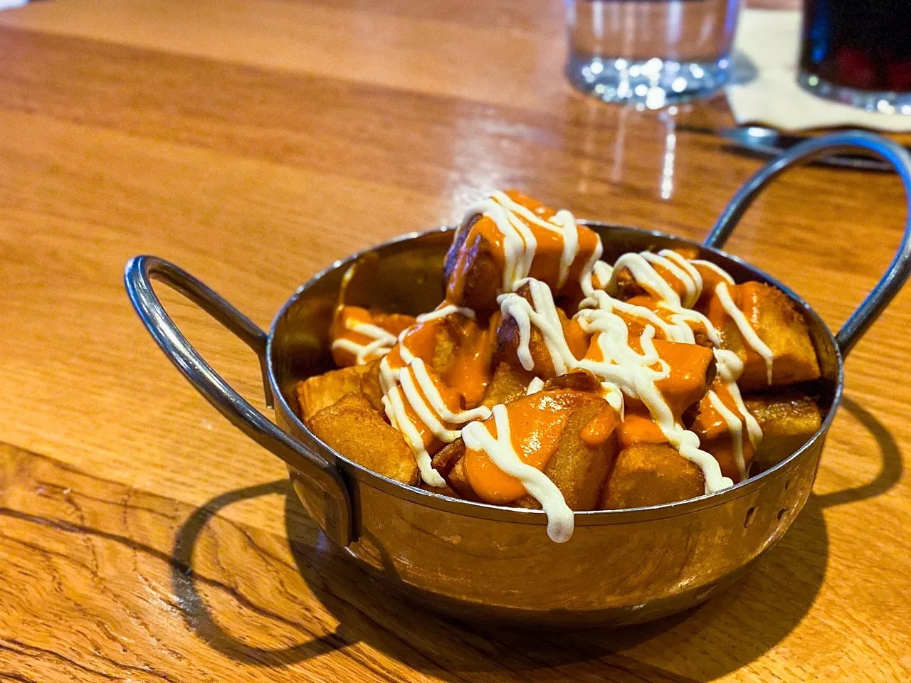 Crispy potato cubes, spicy brava sauce, aioli at Bulla Gastrobar.