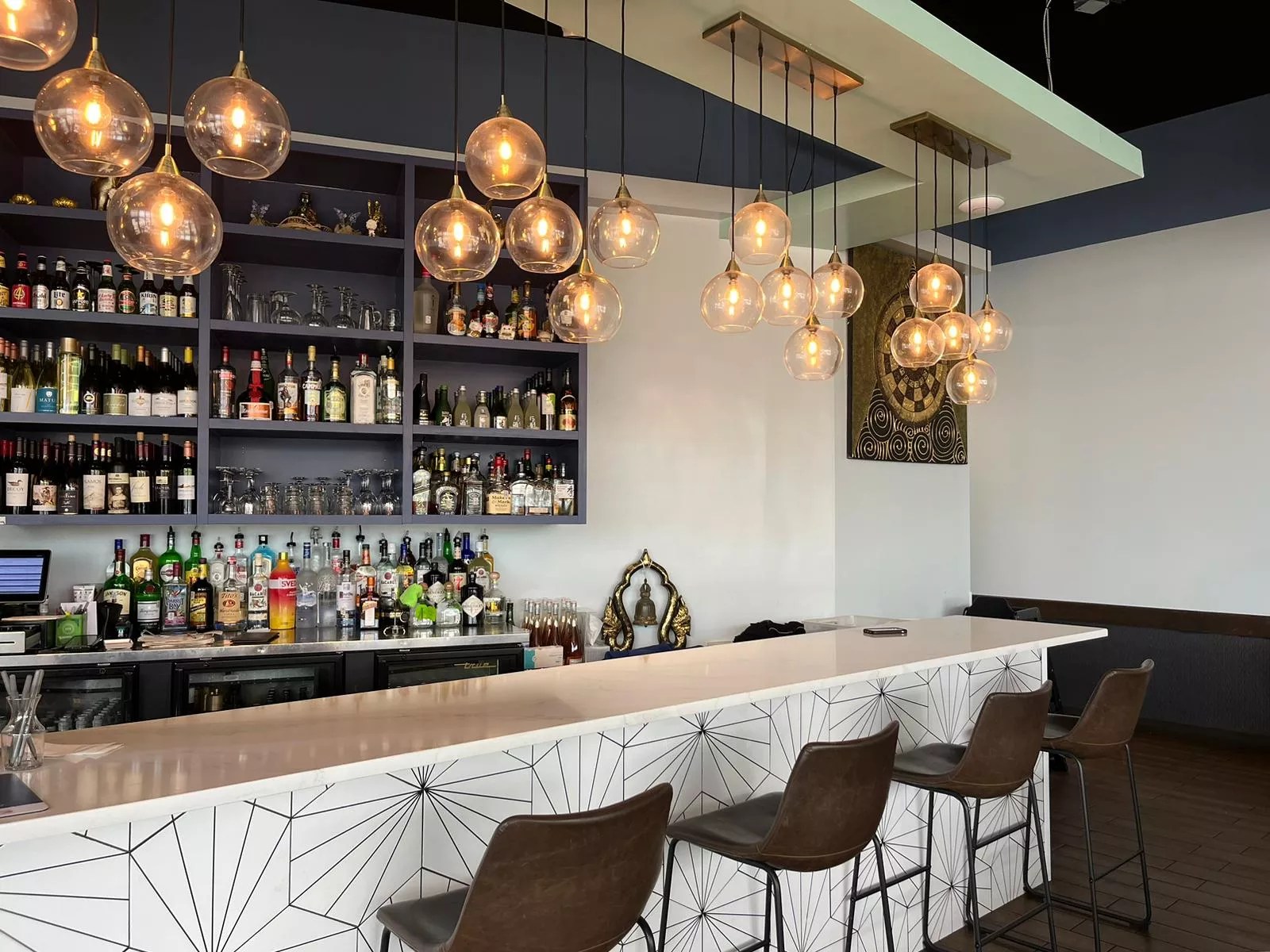 Spoon + Fork’s interior gives an elegant vibe. There are tables for family-dining and a full-service bar, too.
