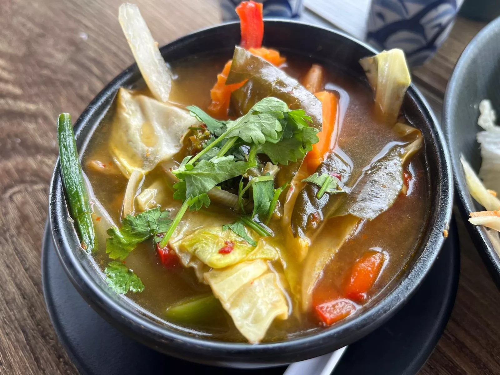 Spoon + Fork’s specialty, Tom Yum soup, is made of a clear coconut-lemongrass broth. It’s perfect for the cold or rainy days.